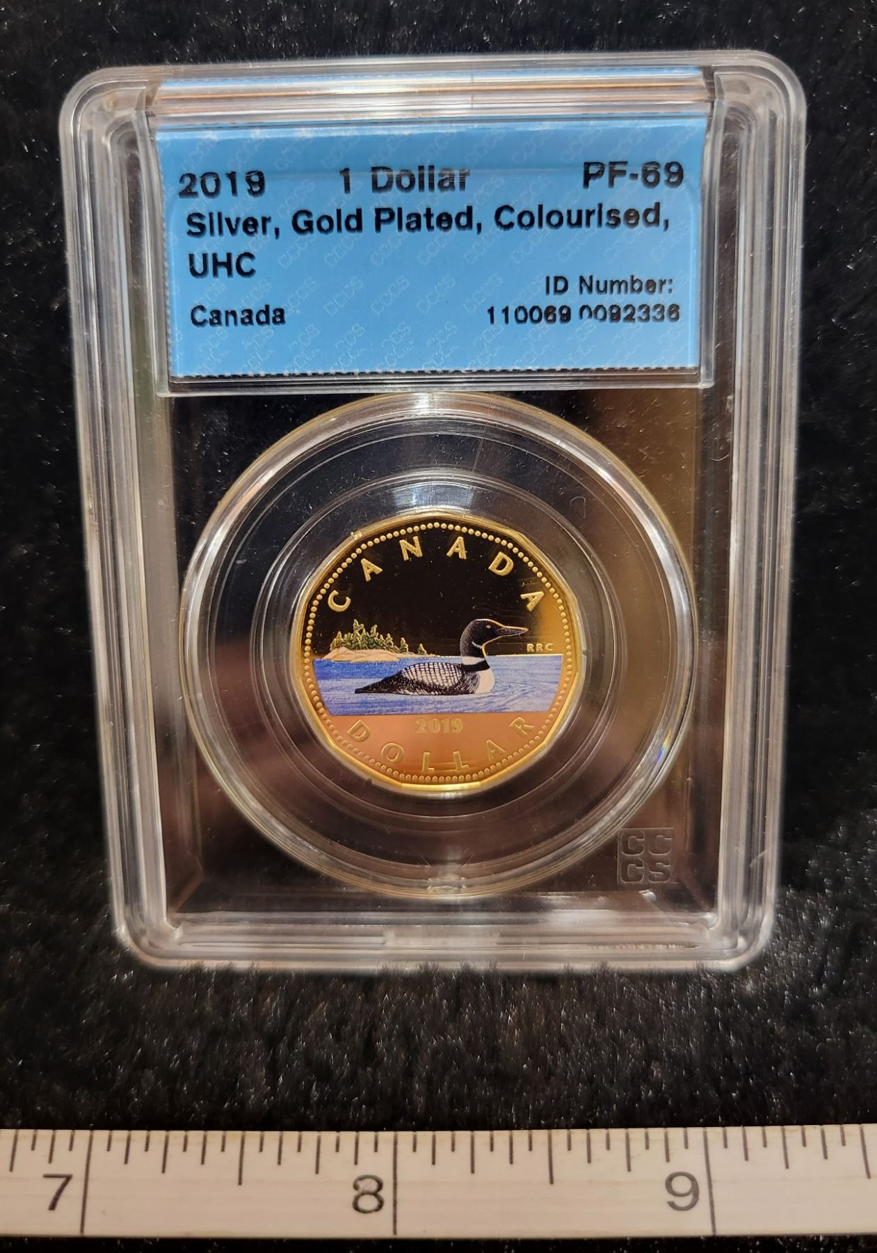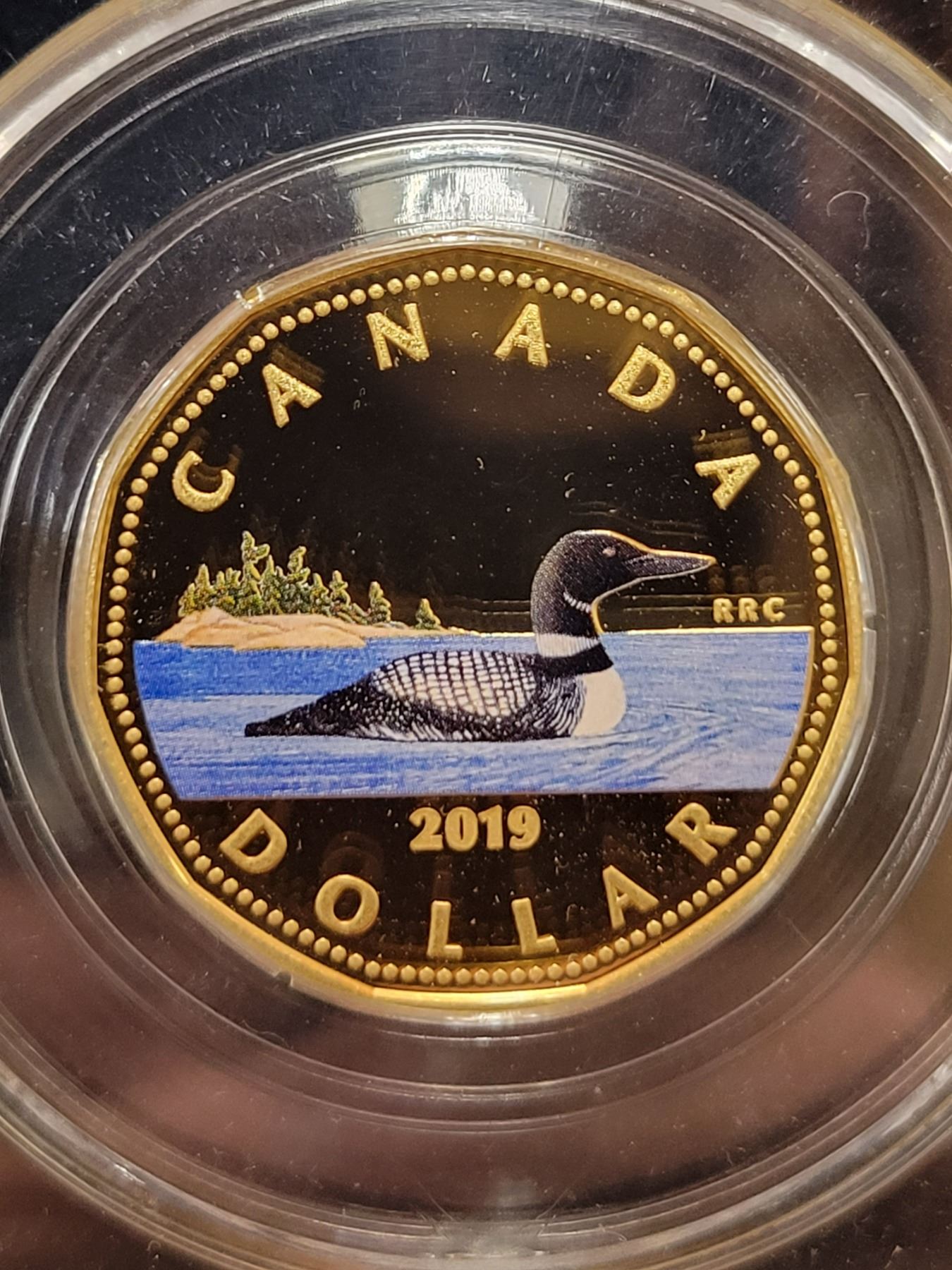 2019 Canada 1 dollar $1.00 loonie CCCS PF-69 silver, gold plated, colourised