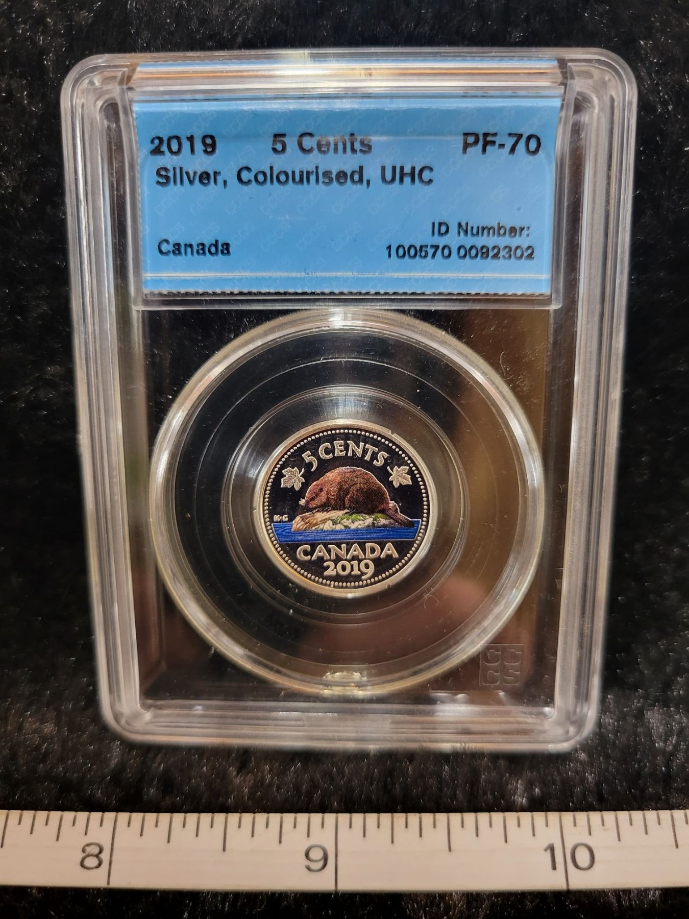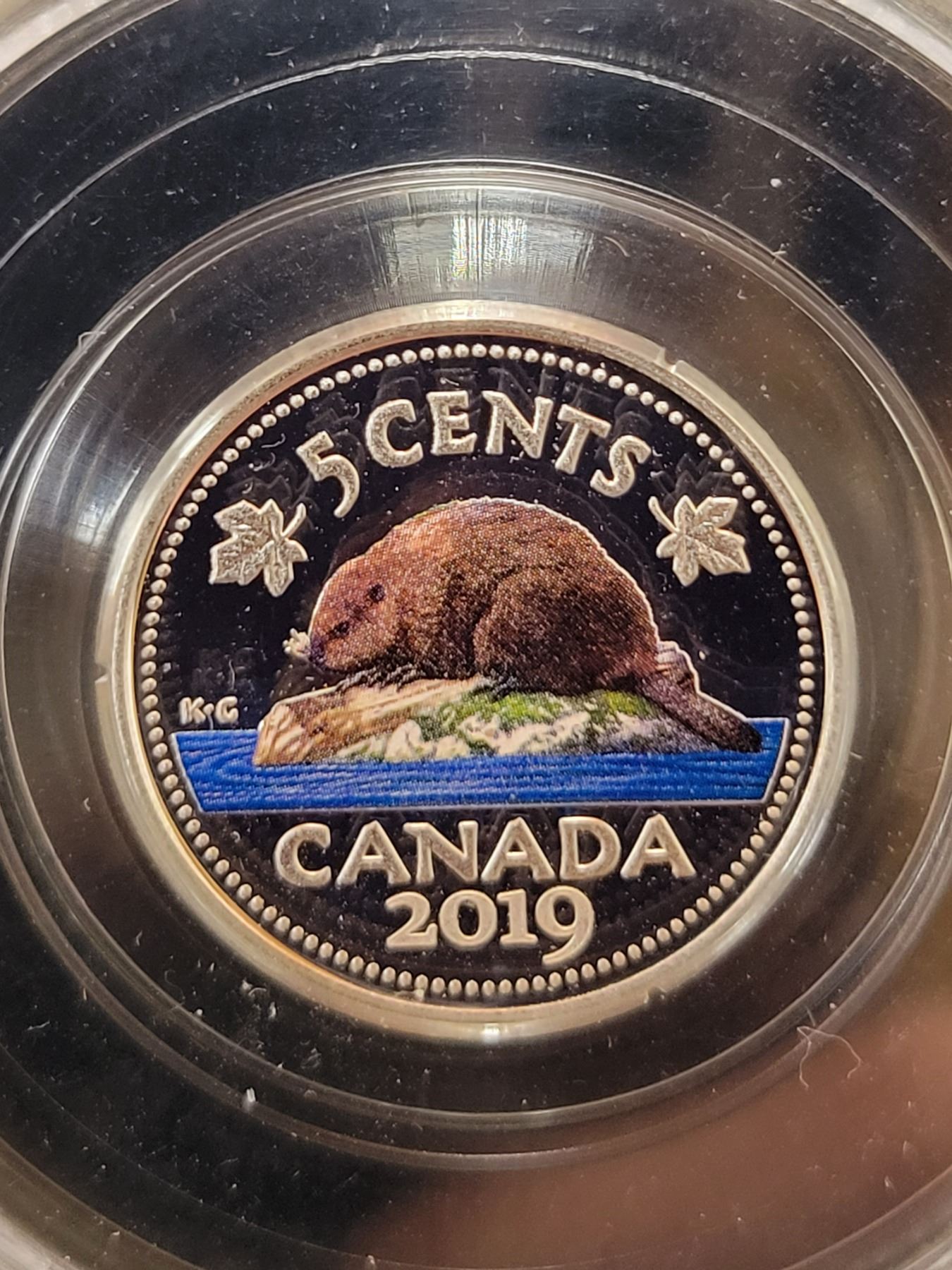2019 Canada 5 cents 5¢, silver, colourised, UHC ultra heavy cameo CCCS PF-70