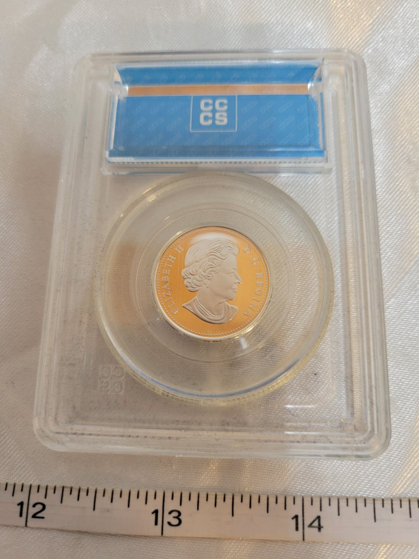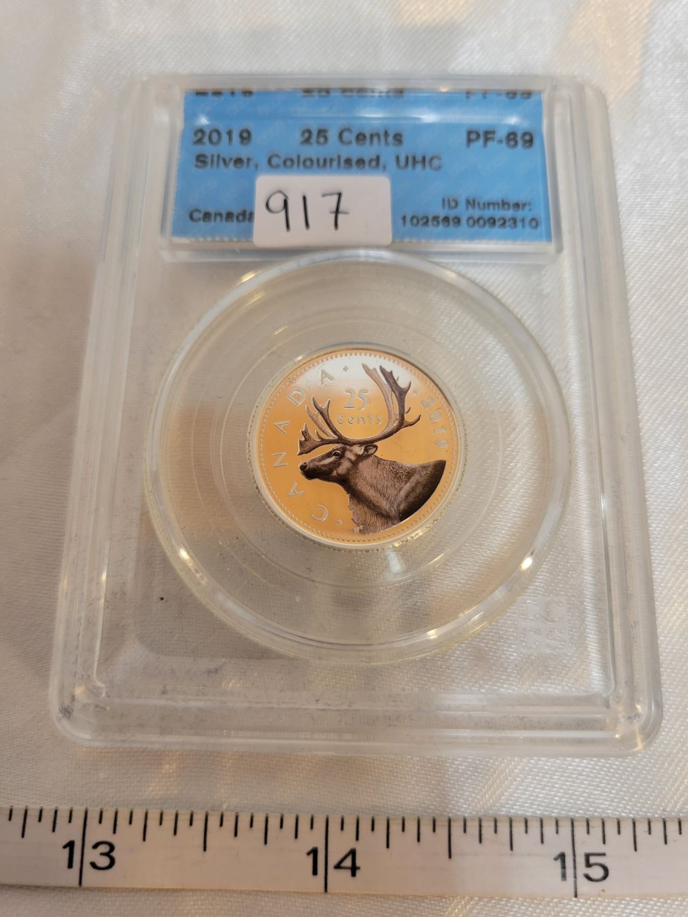 2019 fine silver 25 cent 25¢ Canada quarter, colourised, UHC - PF-69