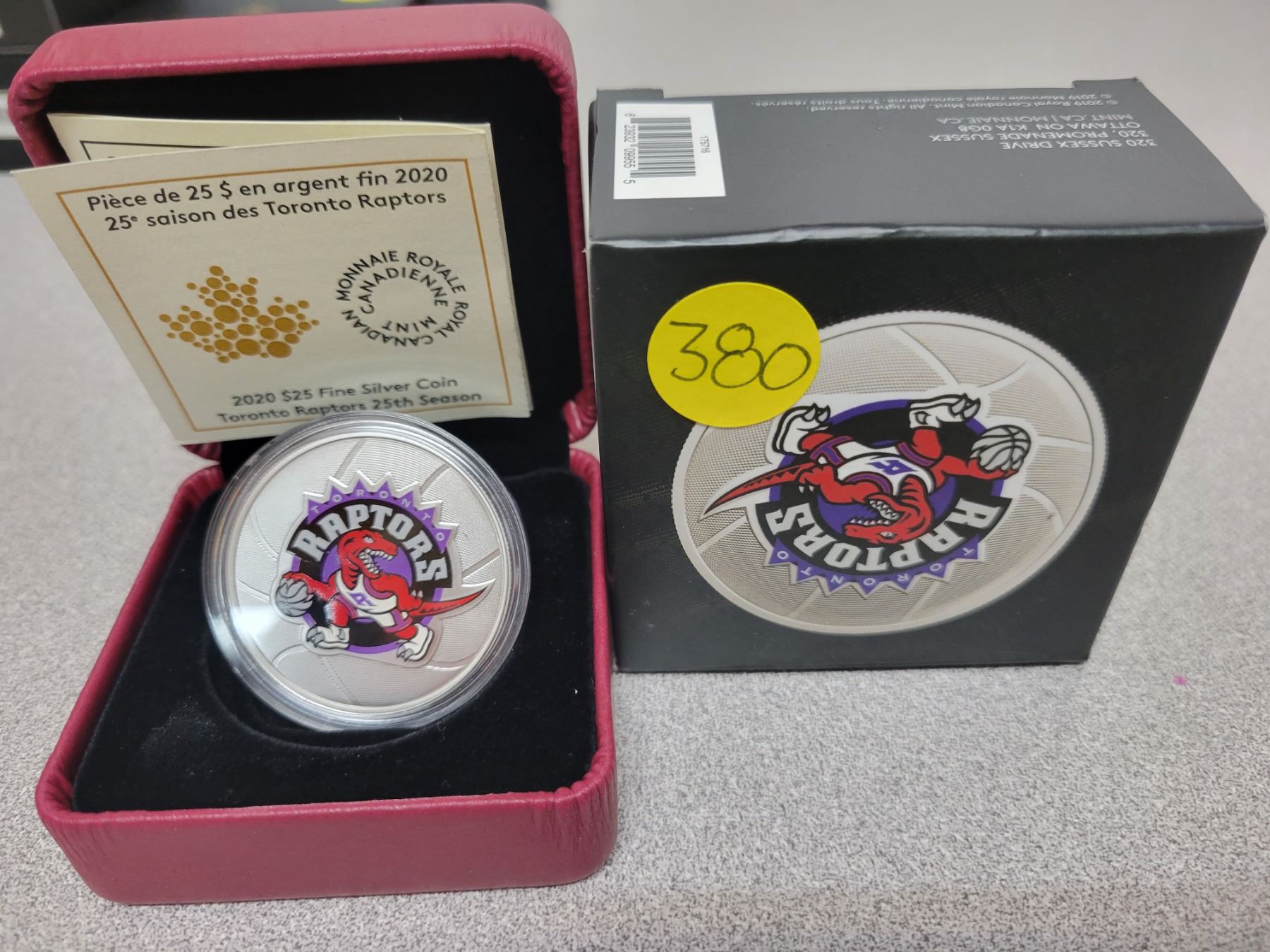 2020 $25.00 fine silver coin - Toronto Raptors 25th Season