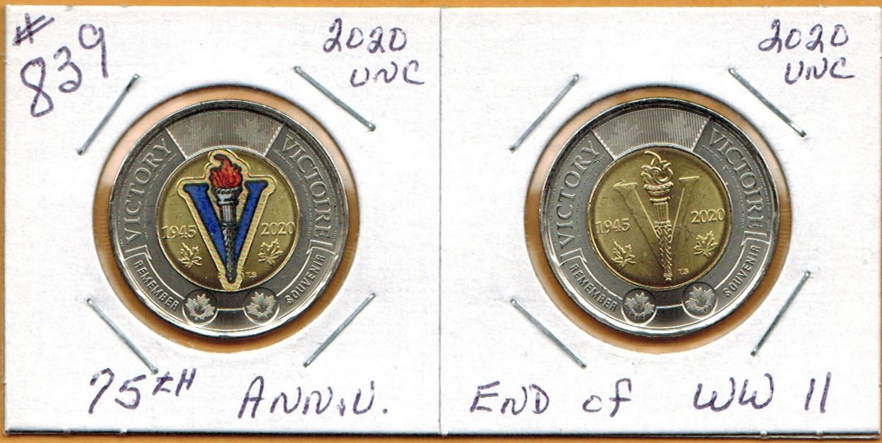 2020 75th ANNIVERSARY - END OF WW II - $2.00 COINS - Coloured & Non Coloured