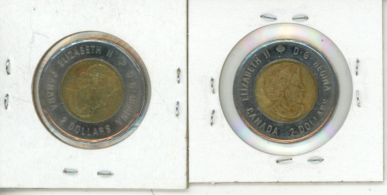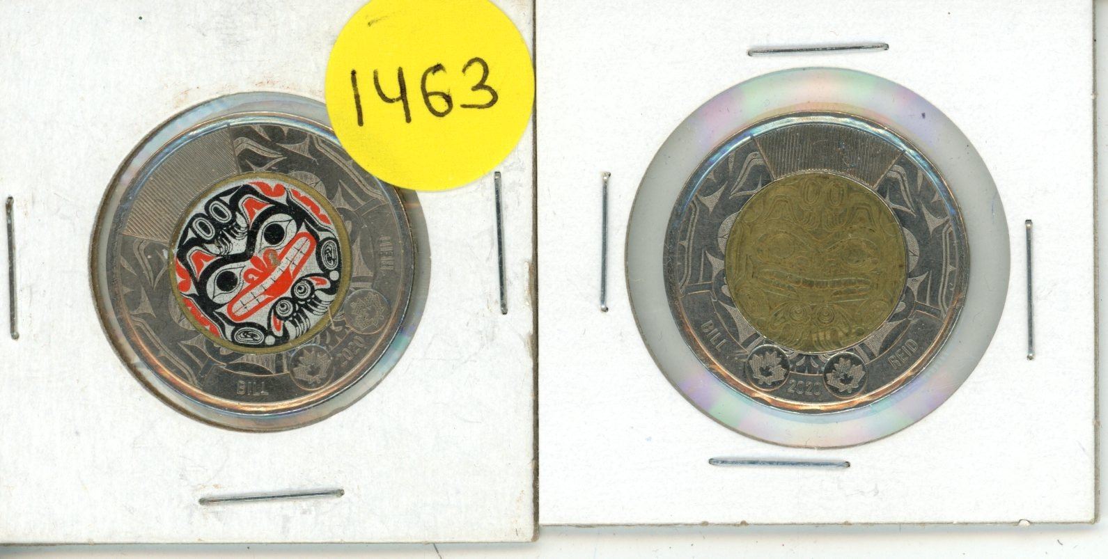 2020 Canadian $2 "Toonie" coin commemorating the 100th anniversary of the birth of Bill Reid, a renowned Haida artist - Colour and Uncolour.