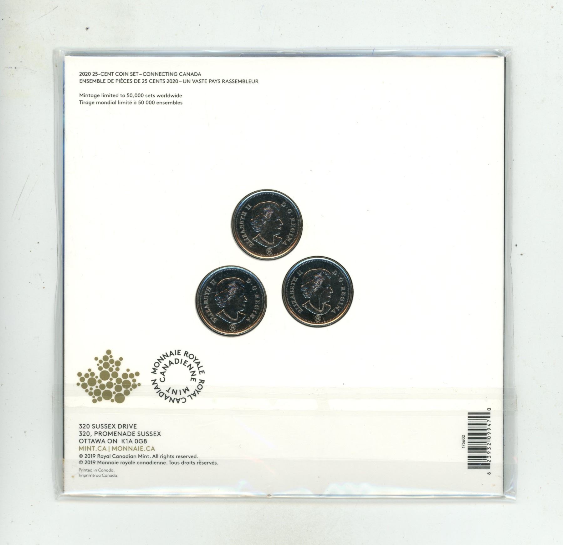 2020- Connecting Canada 25 cent - Three coin set