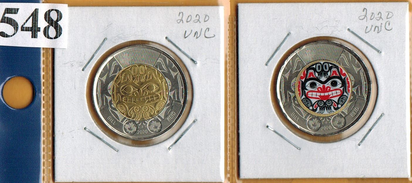 2020 HAIDA GRIZZLY BEAR - COLOURED AND NON COLOURED - $2.00 COINS - UNCIRCULATED
