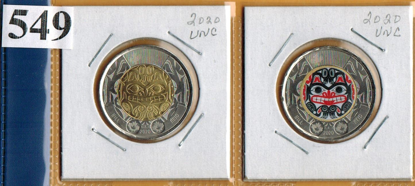 2020 HAIDA GRIZZLY BEAR - COLOURED AND NON COLOURED - $2.00 COINS - UNCIRCULATED