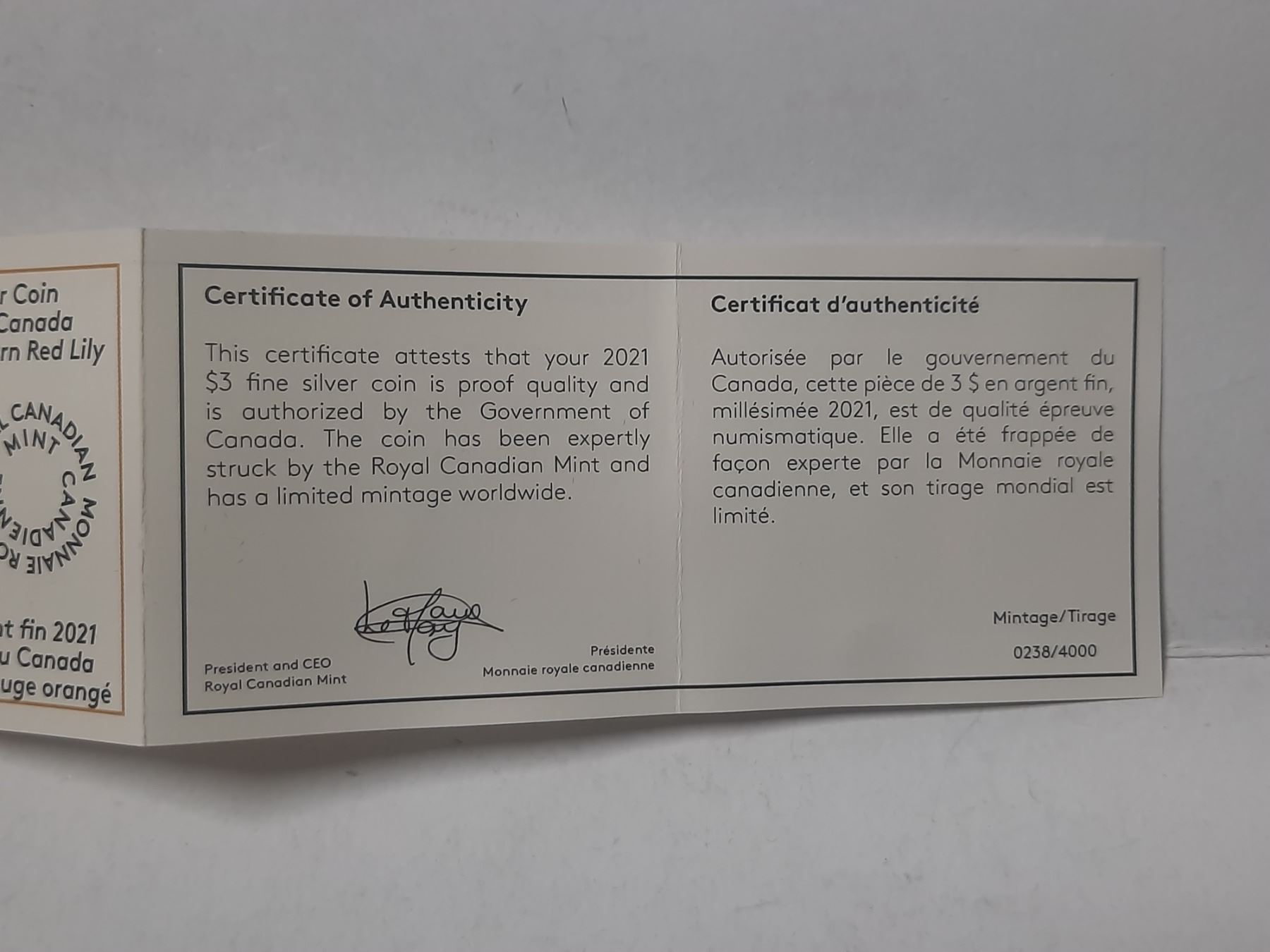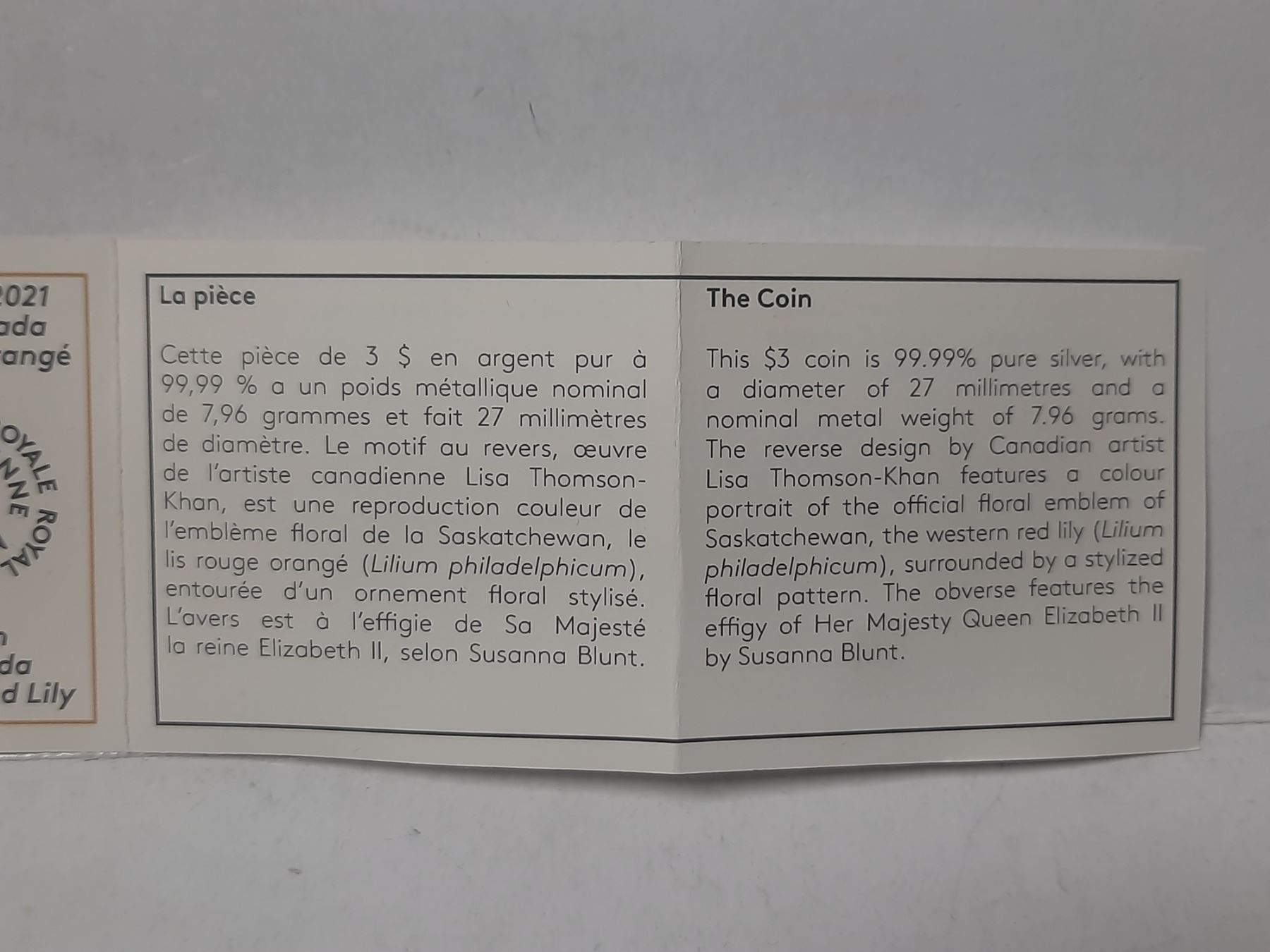 2021 $3 Fine Silver Coin - Floral Emblems of Canada - Saskatchewan : Western Red Lily (99.99%pure)