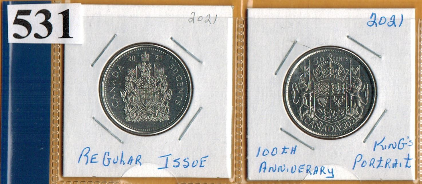2021 50 CENT COINS - Regular Type & 100th Anniversary of Canada's Coat of Arms (King's Portrait)