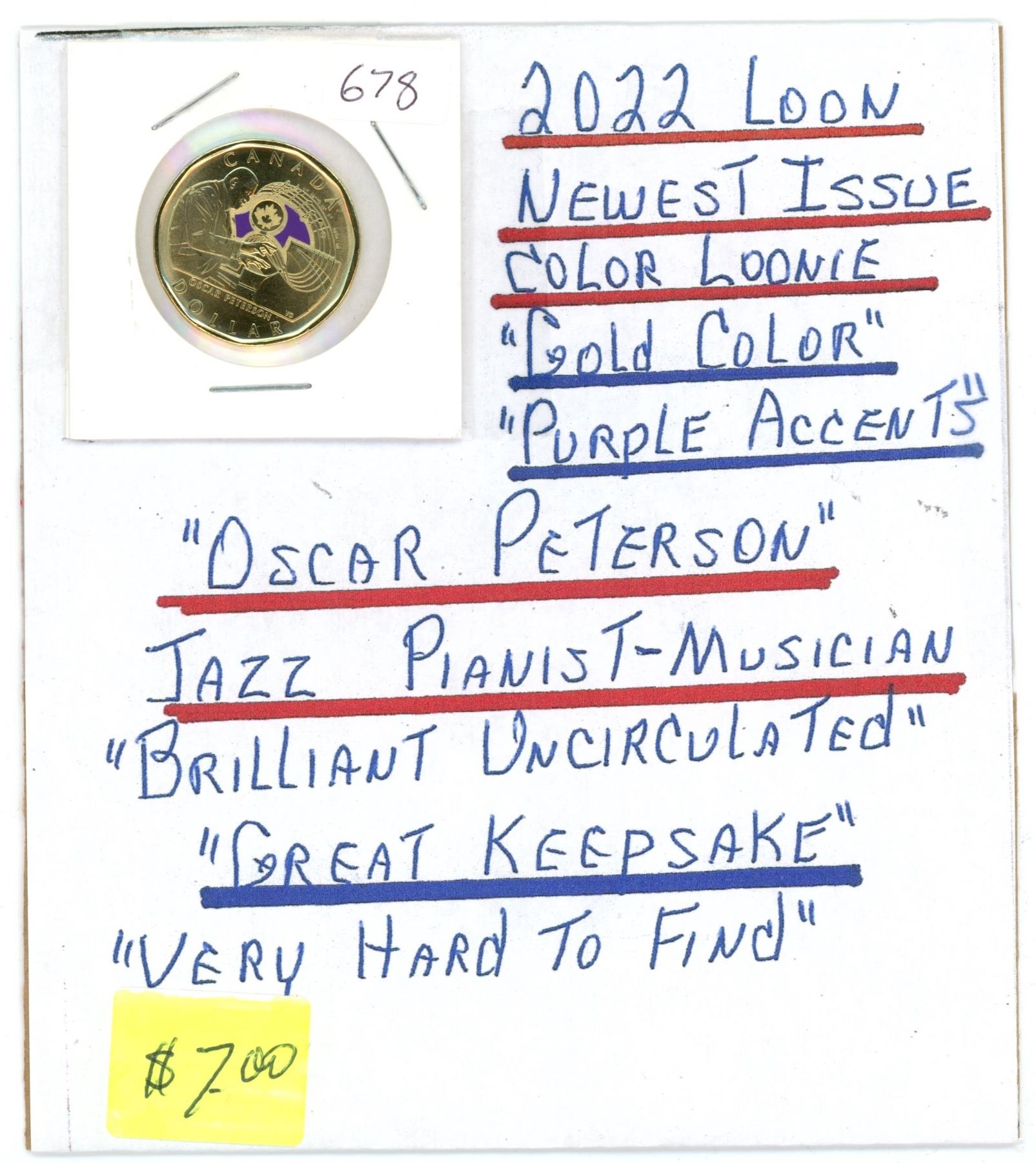 2022 1 Dollar Canadian coin (Loonie) Uncirculated - "Oscar Peterson" Jazz-Pianist Musician