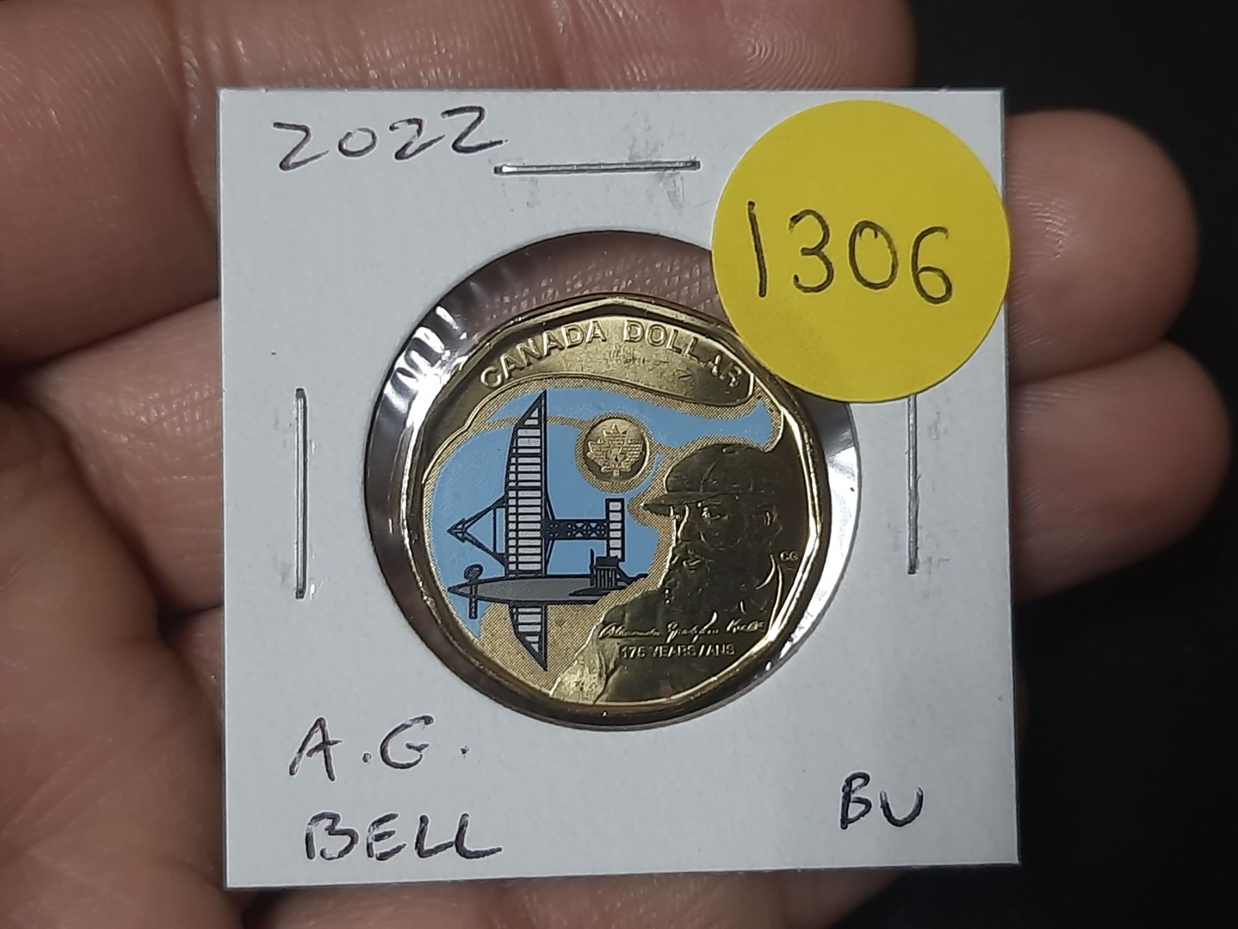 2022 175th Anniversary of the birth of Alexander Graham Bell Loonie. Colourized. BU.