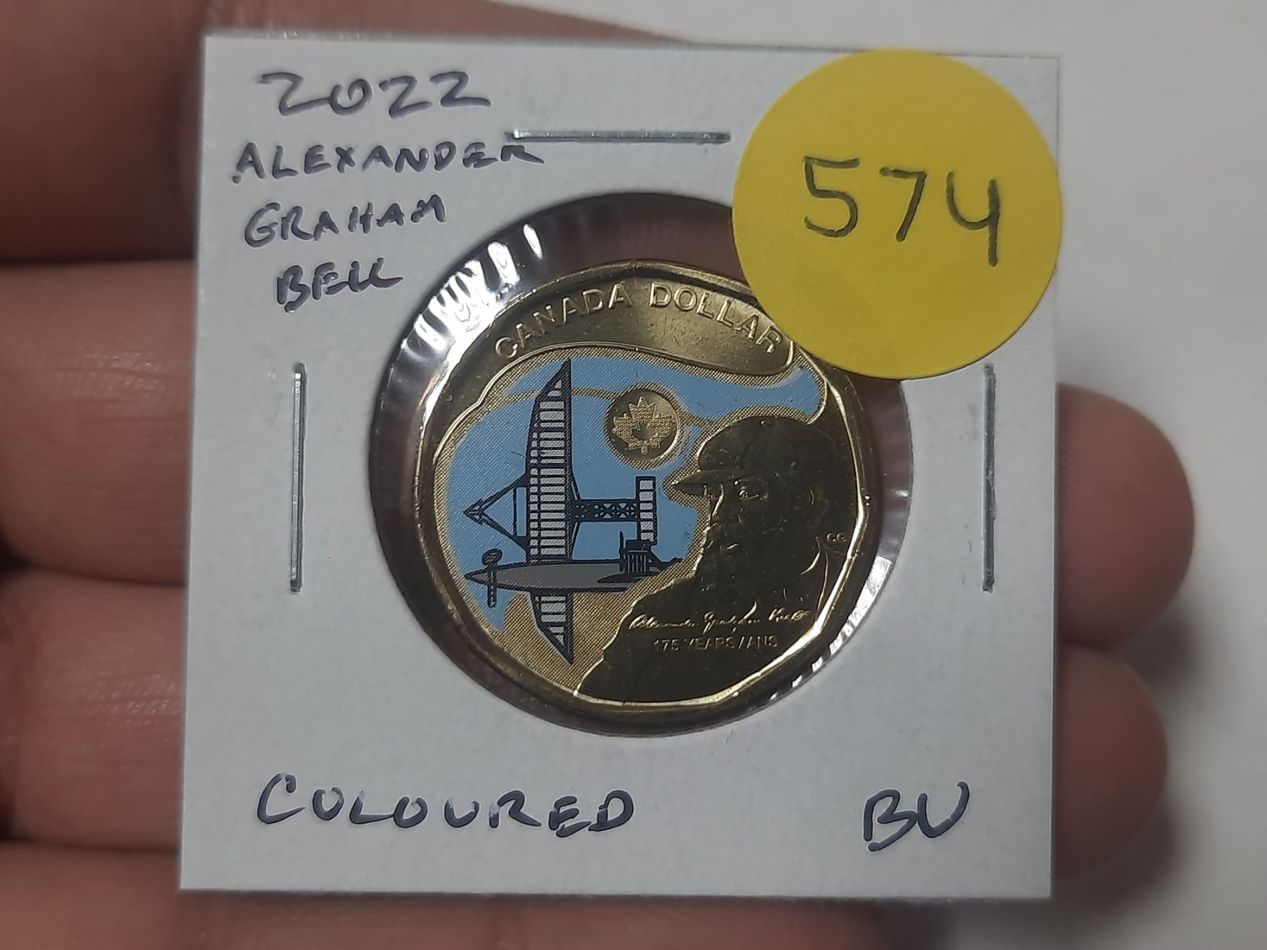 2022 Alexander Graham Bell Loonie Dollar. Commemorates the 175th Anniversary of his birth. Coloured. BU.
