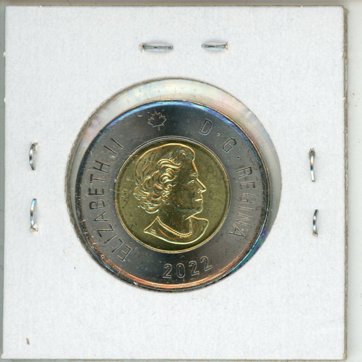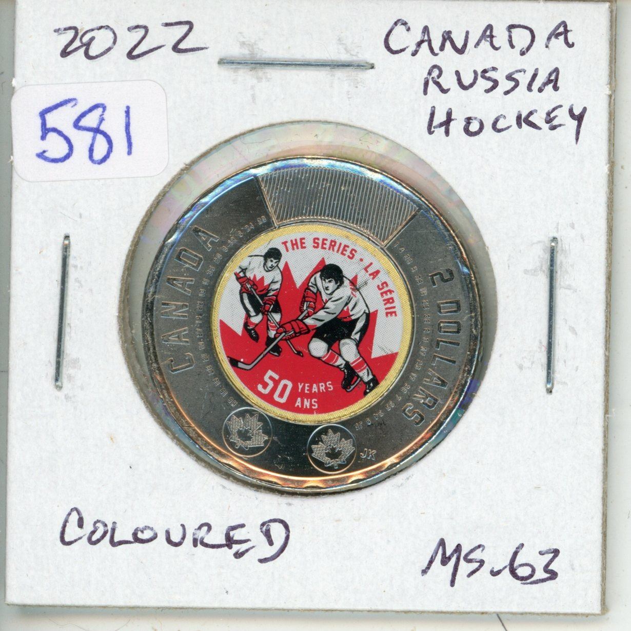 2022 Canada – Russia Hockey Series Toonie. 50th Anniversary of this hockey series. Colourized. MS-63 from an original Royal Canadian Mint roll.