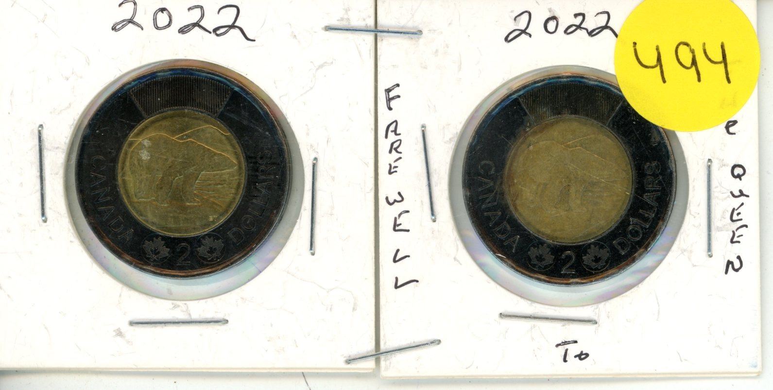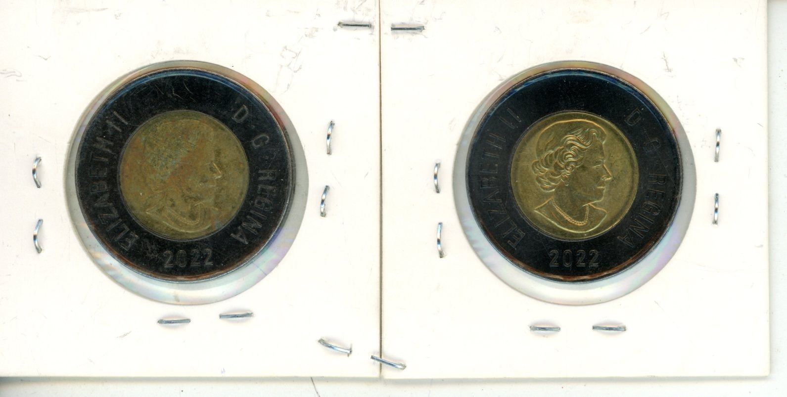 2022 Canadian Toonies x 2 , Black Rim, Farewell to the Queen