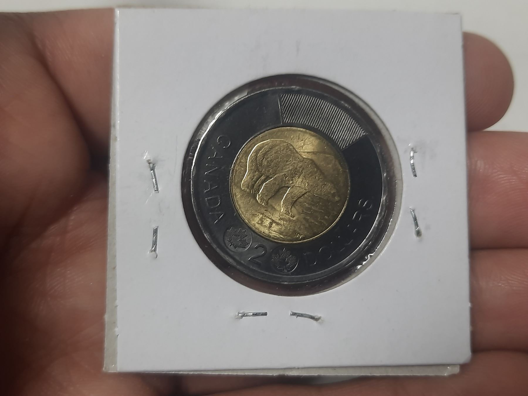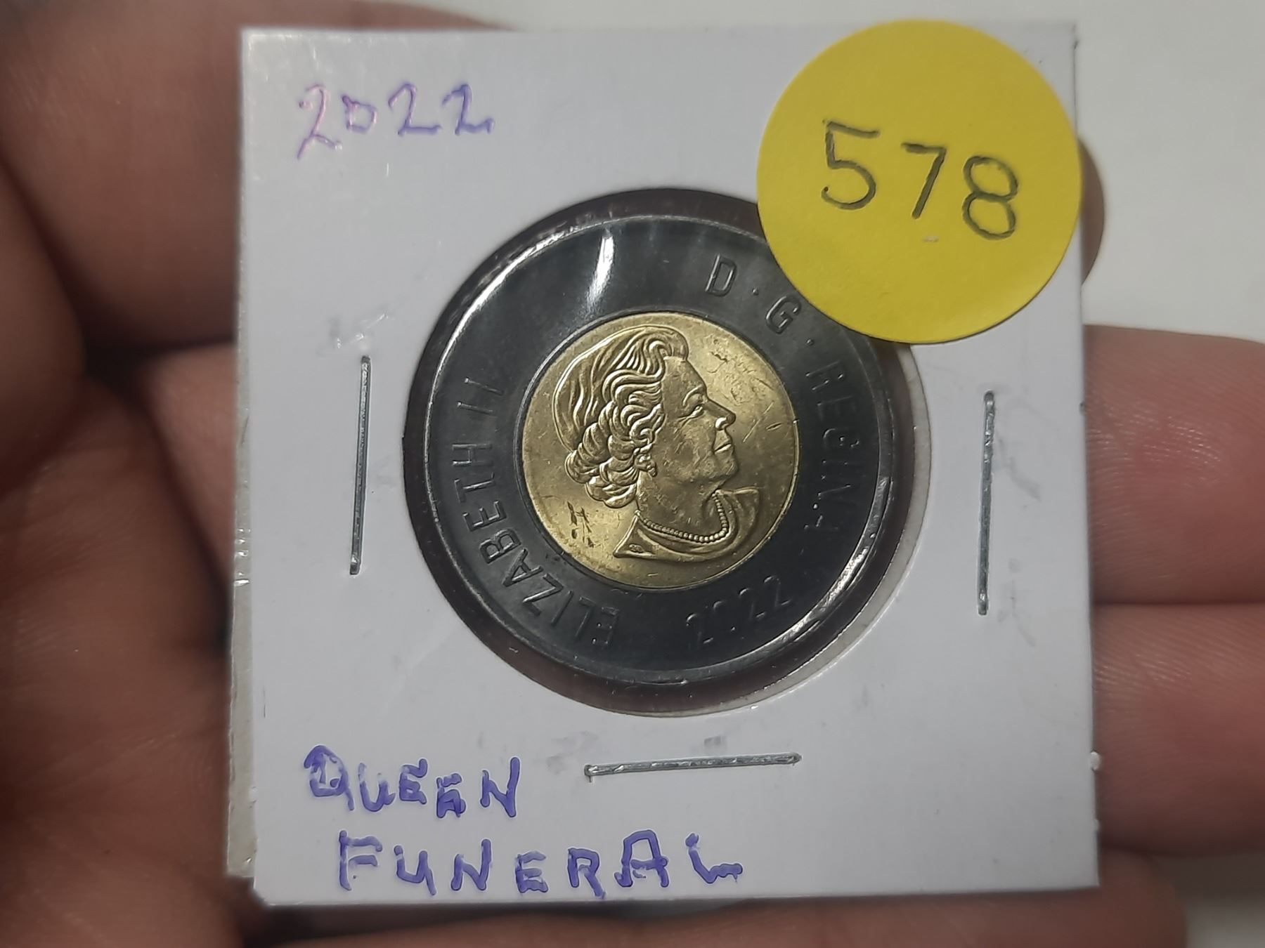2022 Death of Queen Elizabeth II $2 Toonie. Black outer rim symbolizes mourning over her death. BU.