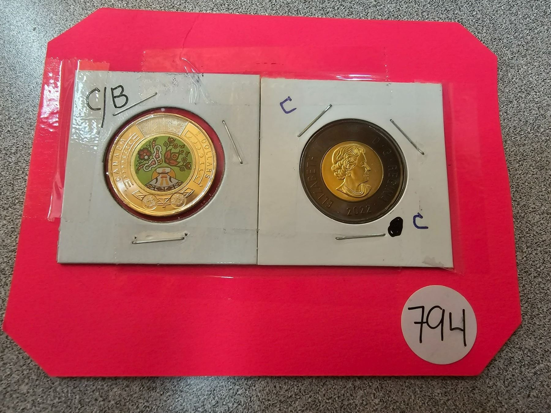 2023 Celebrate national indigenous people day toonies (1) and black ringed Queen Elizabeth II memorial toonie (lot of 2)