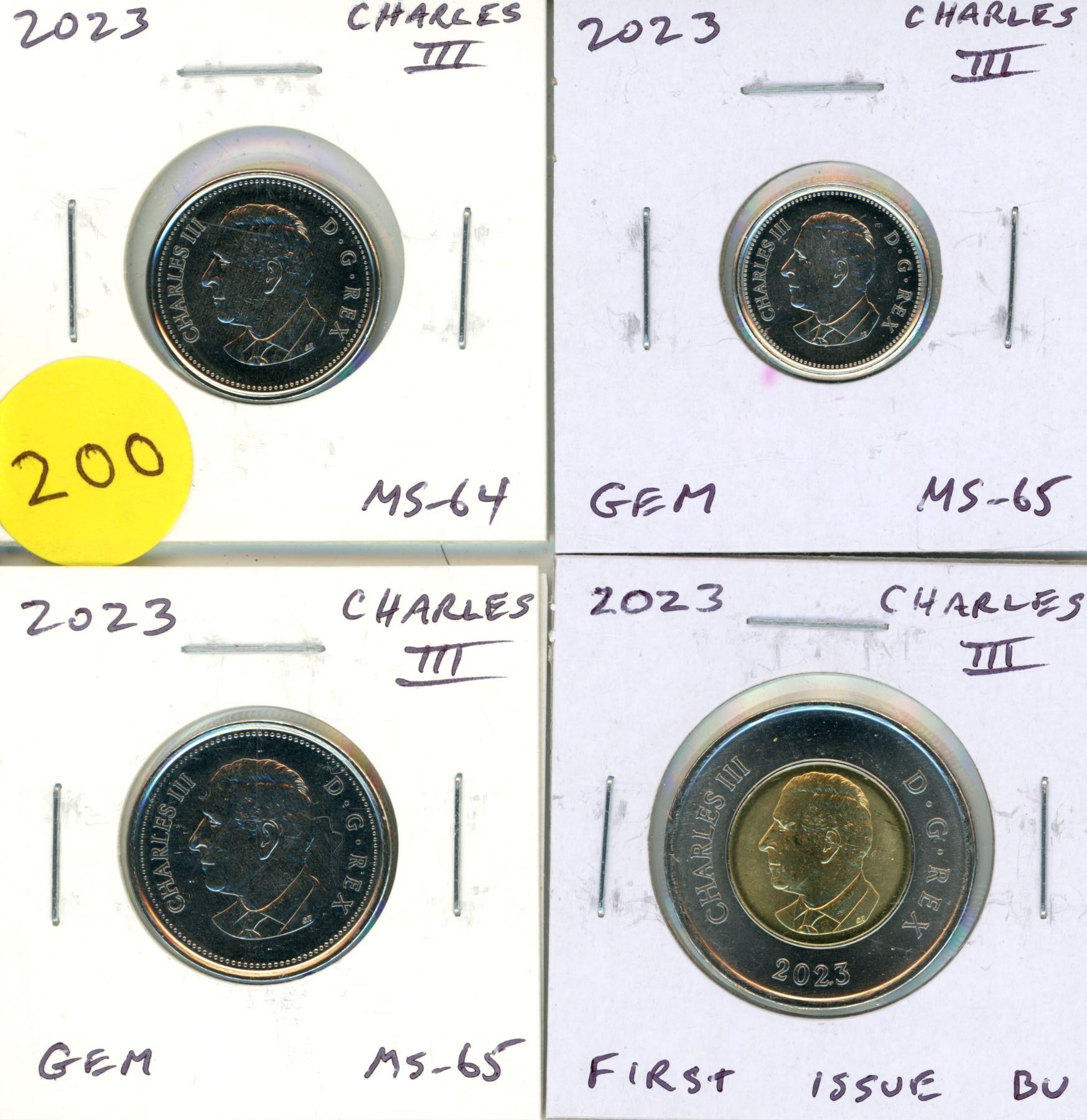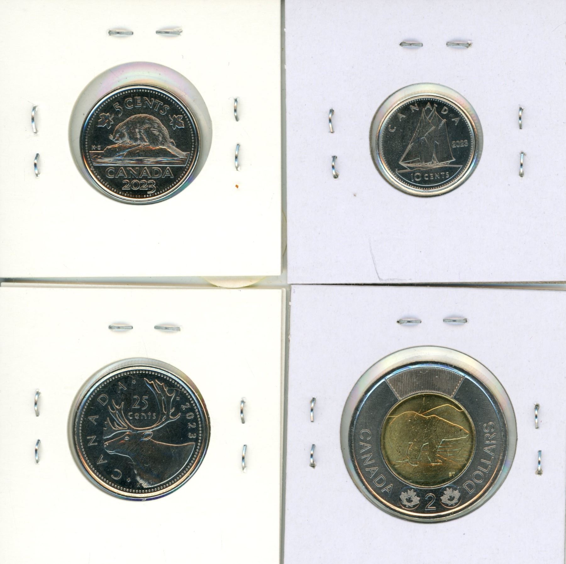 2023 King Charles III 5 Cents, 10 Cents, 25 Cents and 2 Dollar Toonie. First issue of the New King.