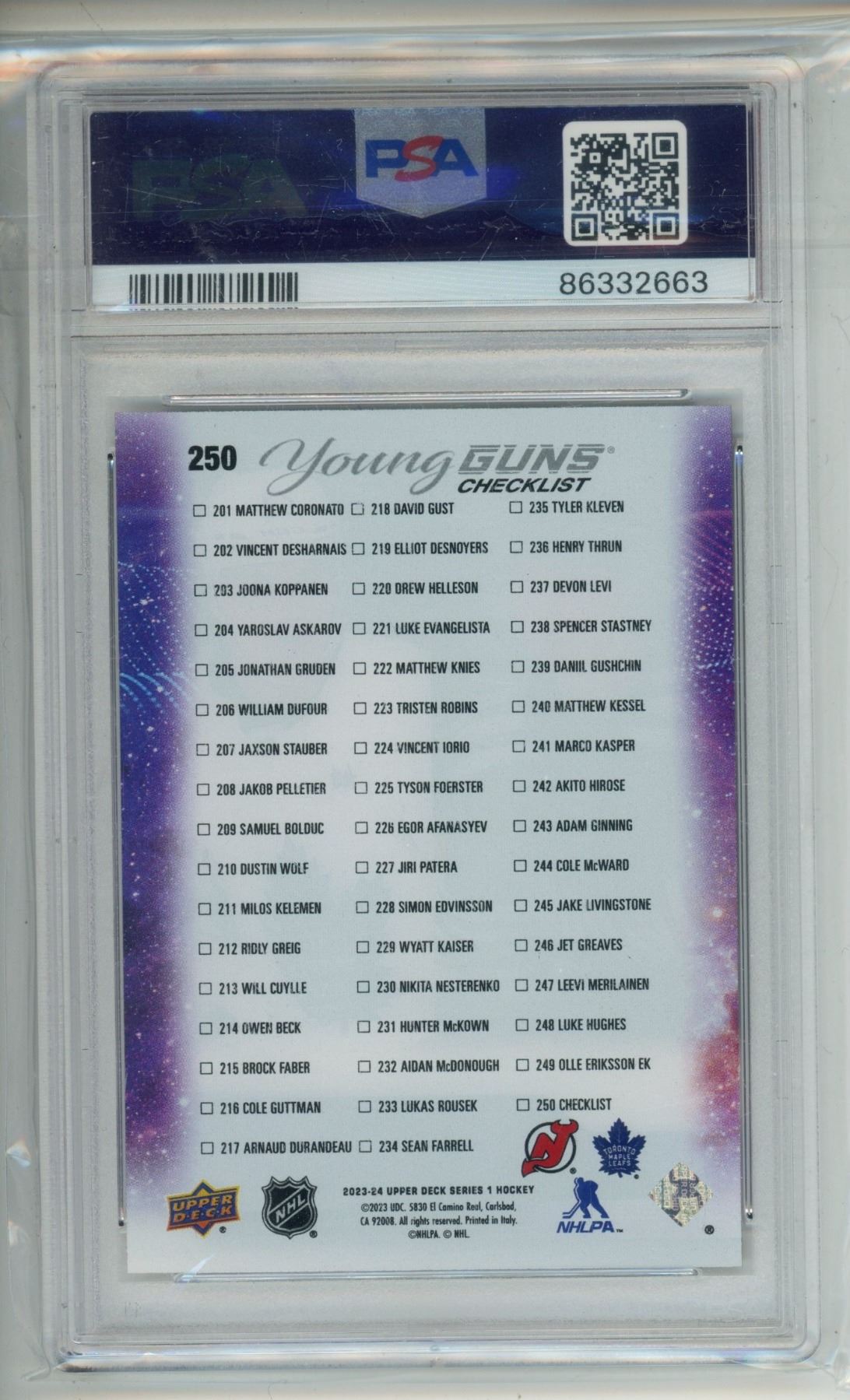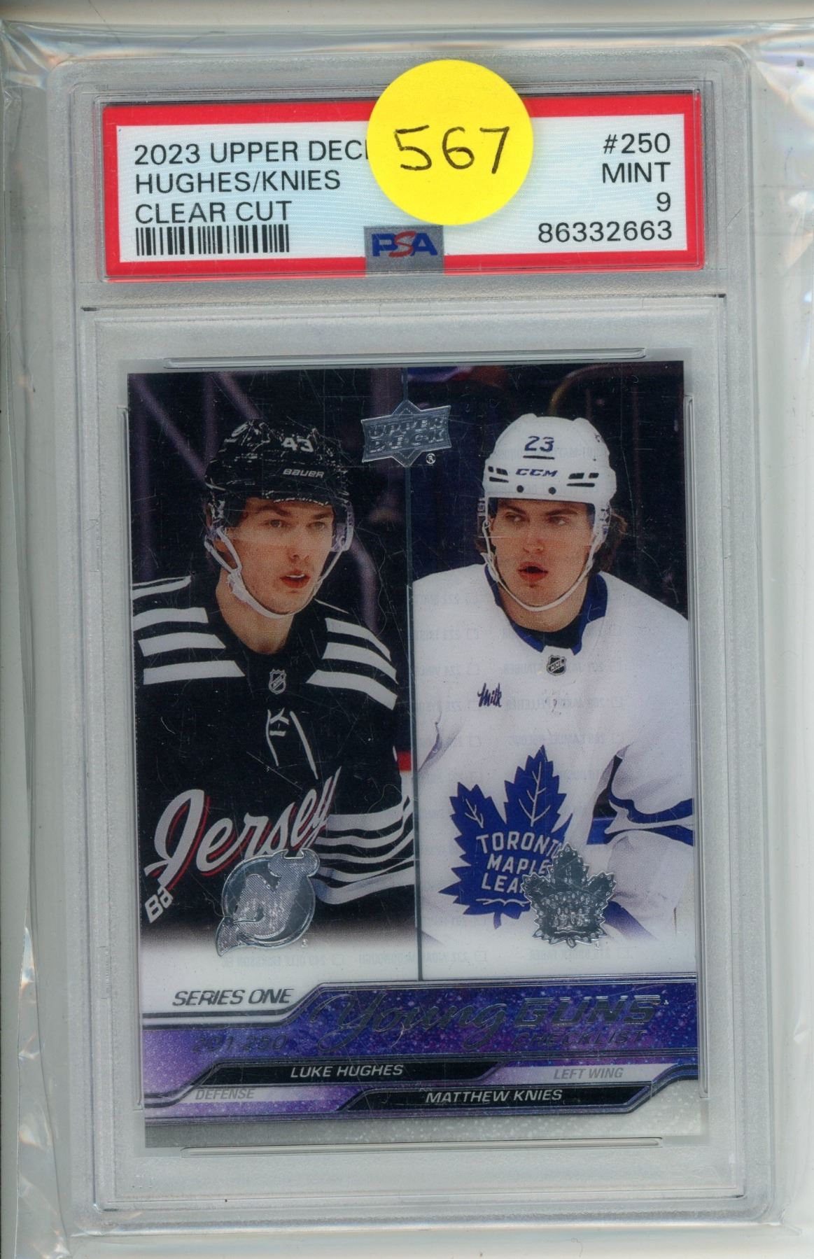 2023 Young Guns Checklist Hughes/Knies Clear Cut #250 Mint 9