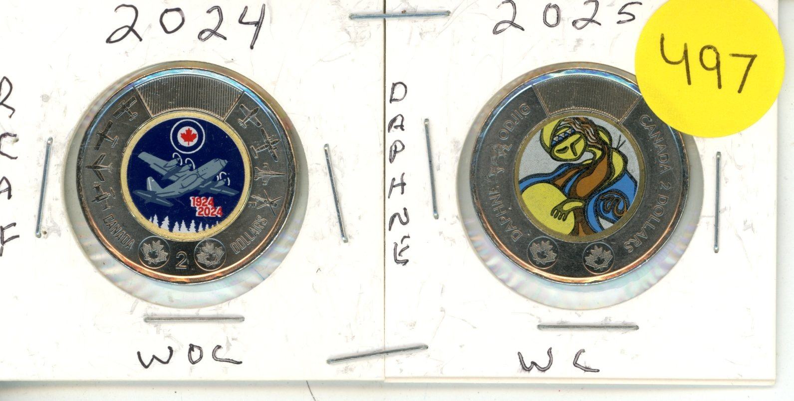 2024 and 2025 Canadian Toonies, RCAF WC & Daphine Odjig WC