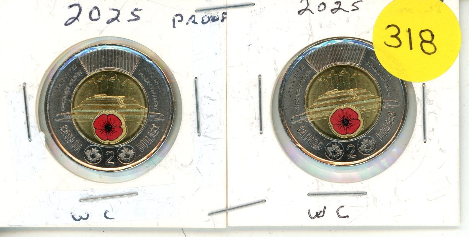 2025 Canadian Toonies, Tomb of the unknown Soldier x 2, mint