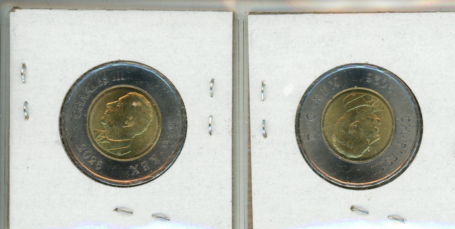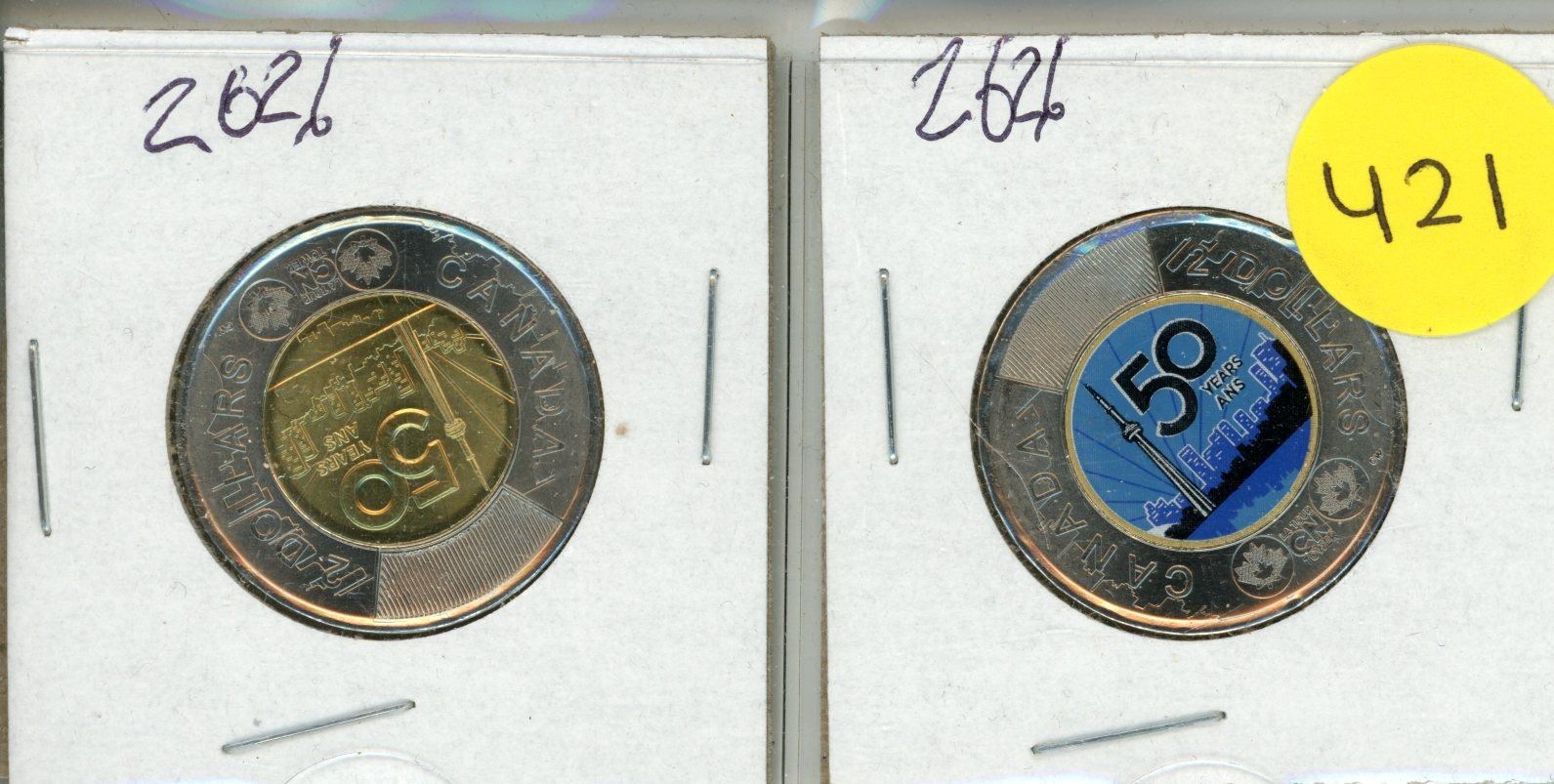 2026 Canadain $2 "Toonie" coins commemorating the 50th anniversary of the CN Tower. - Coloured and Uncoloured.