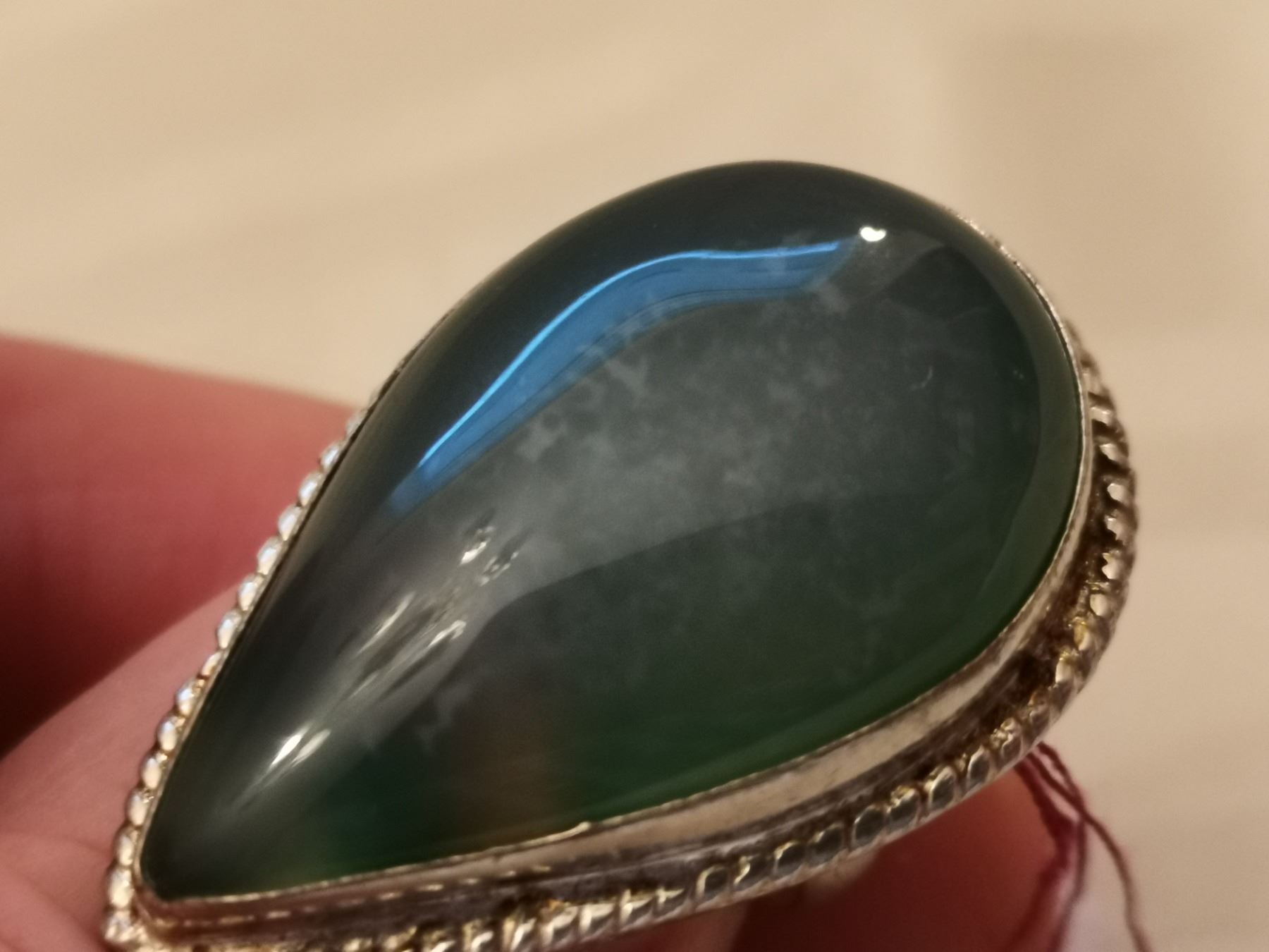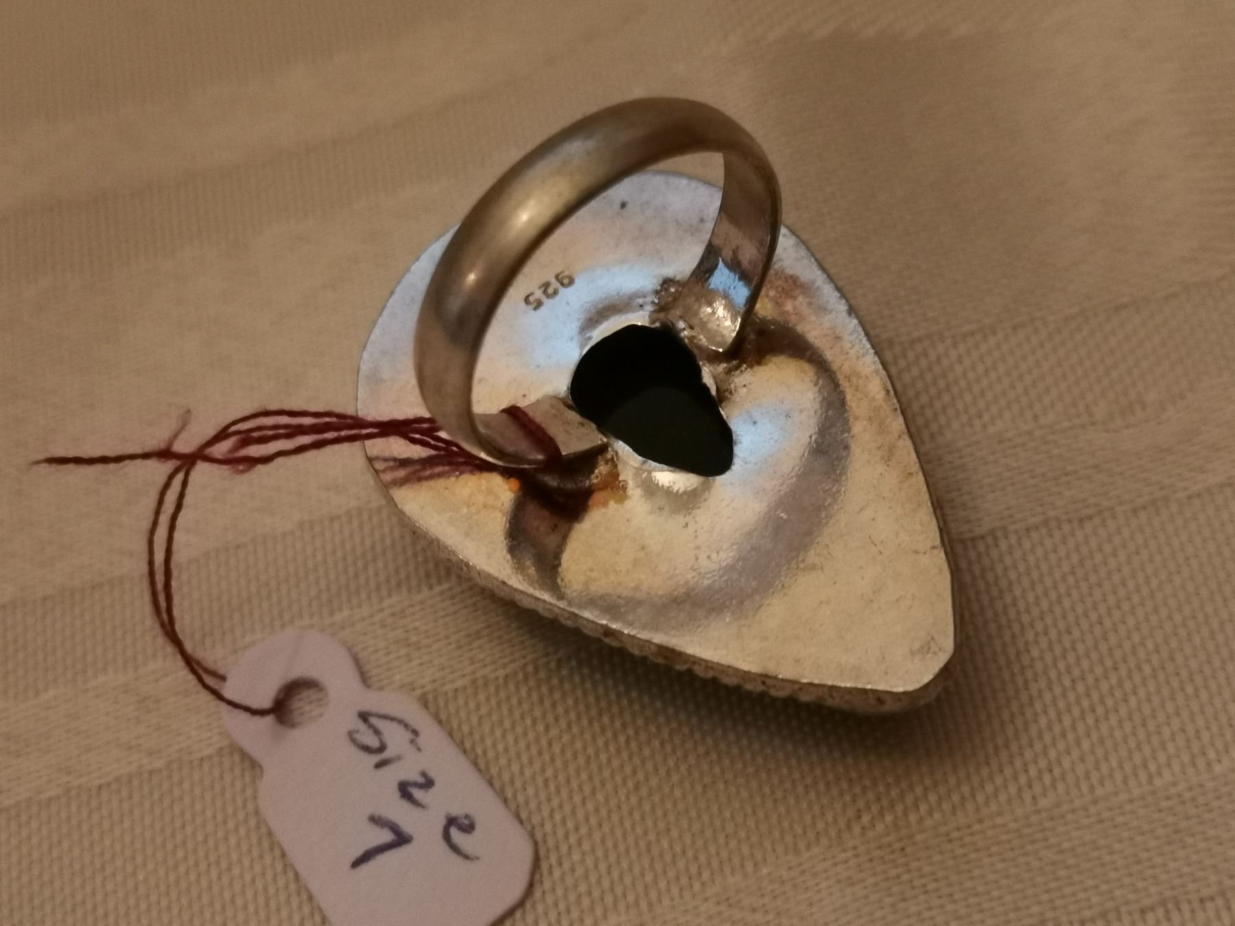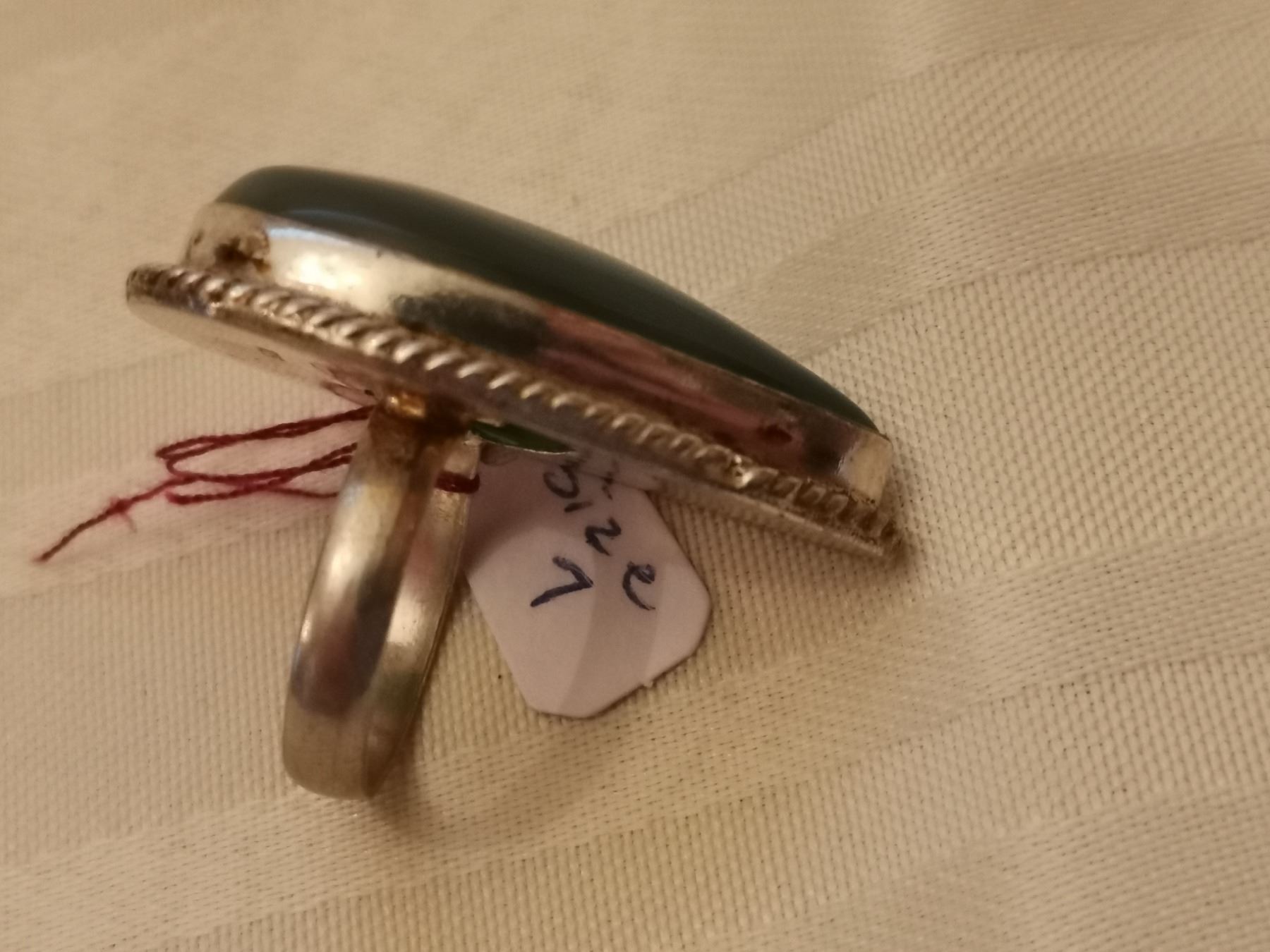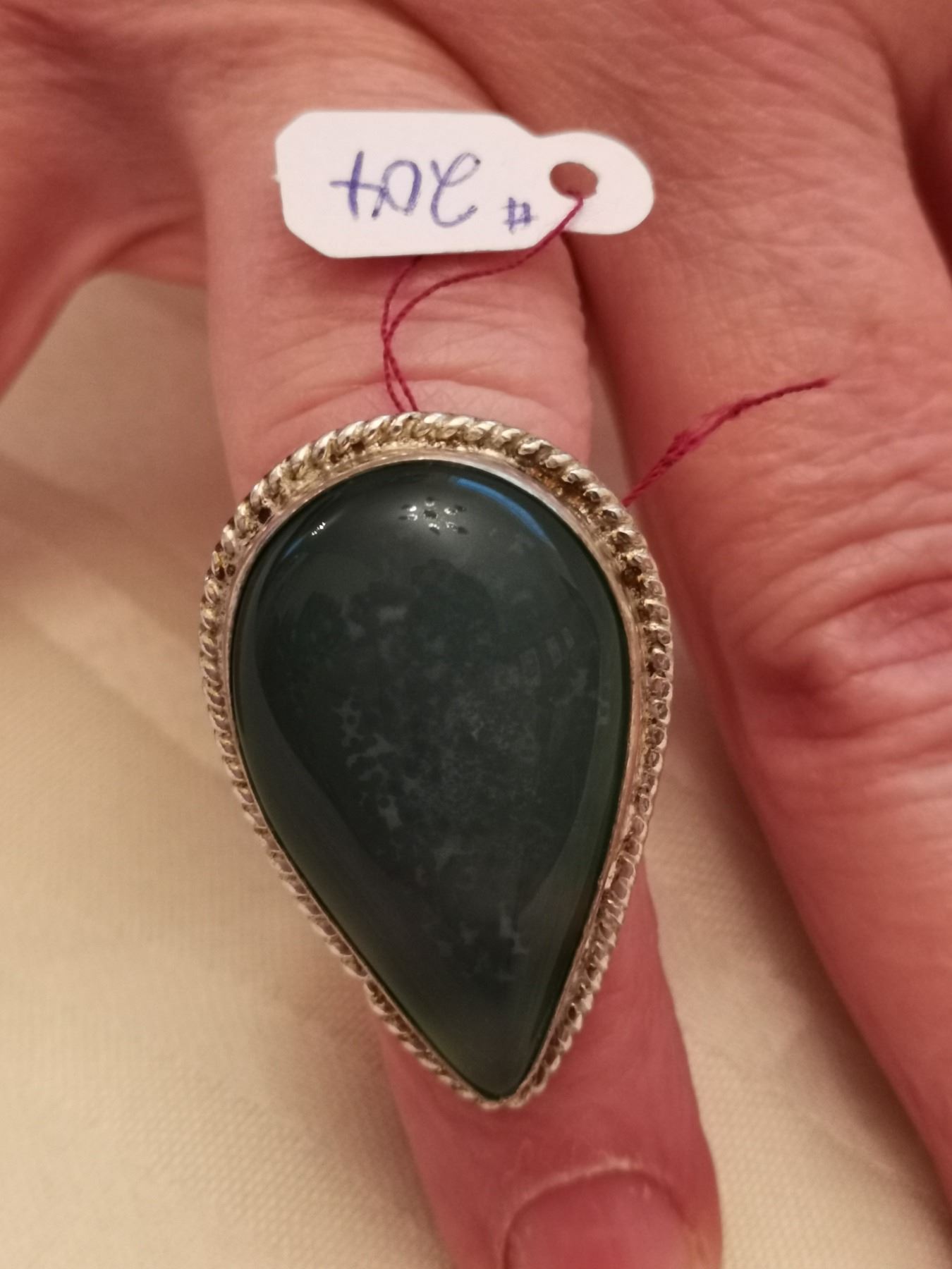 204. Sterling ring with blue-green stone, size 7