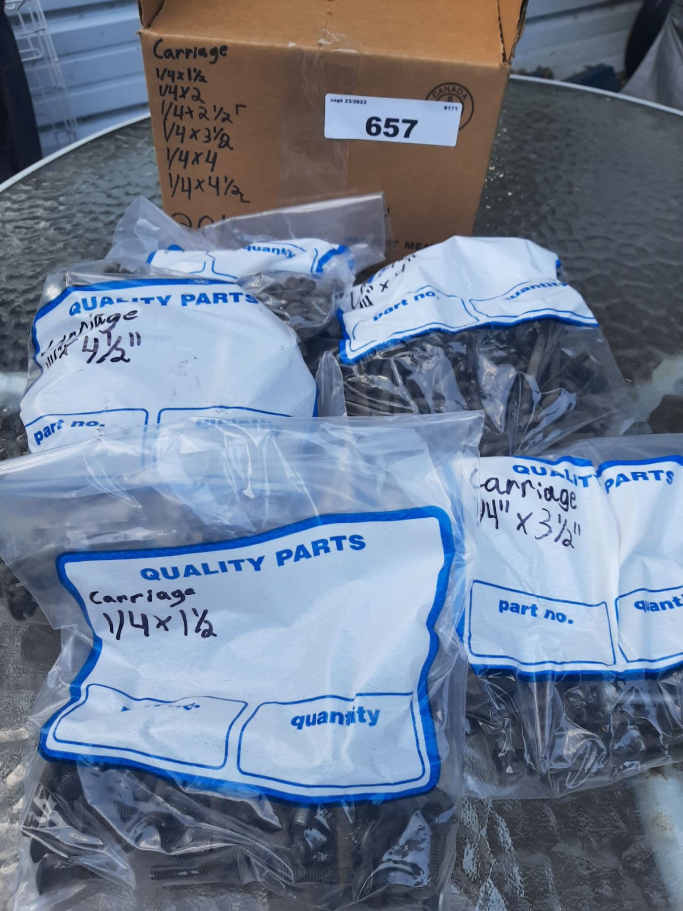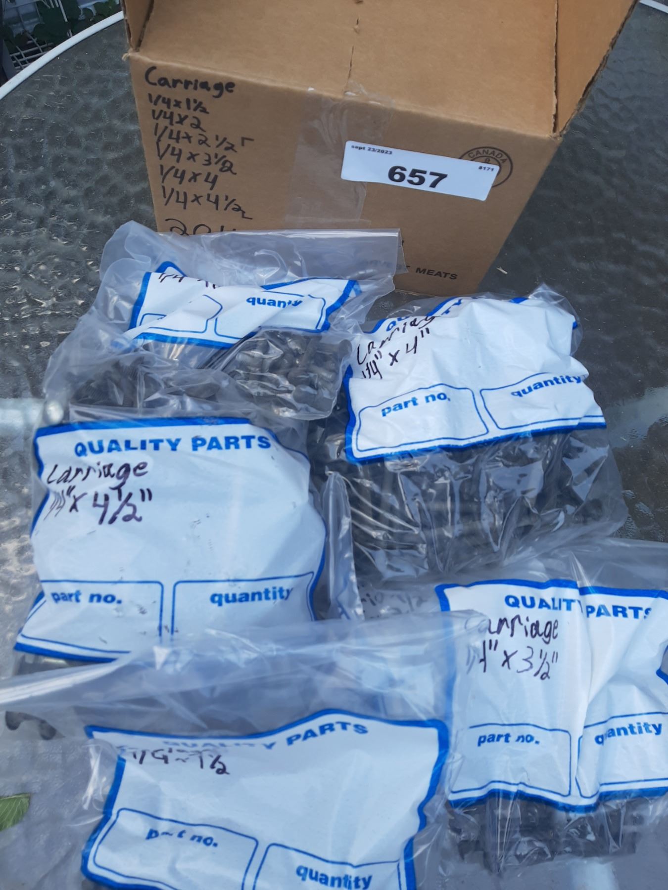 20lb box of 1/4" carriage bolts 1 1/2"-4 1/2"