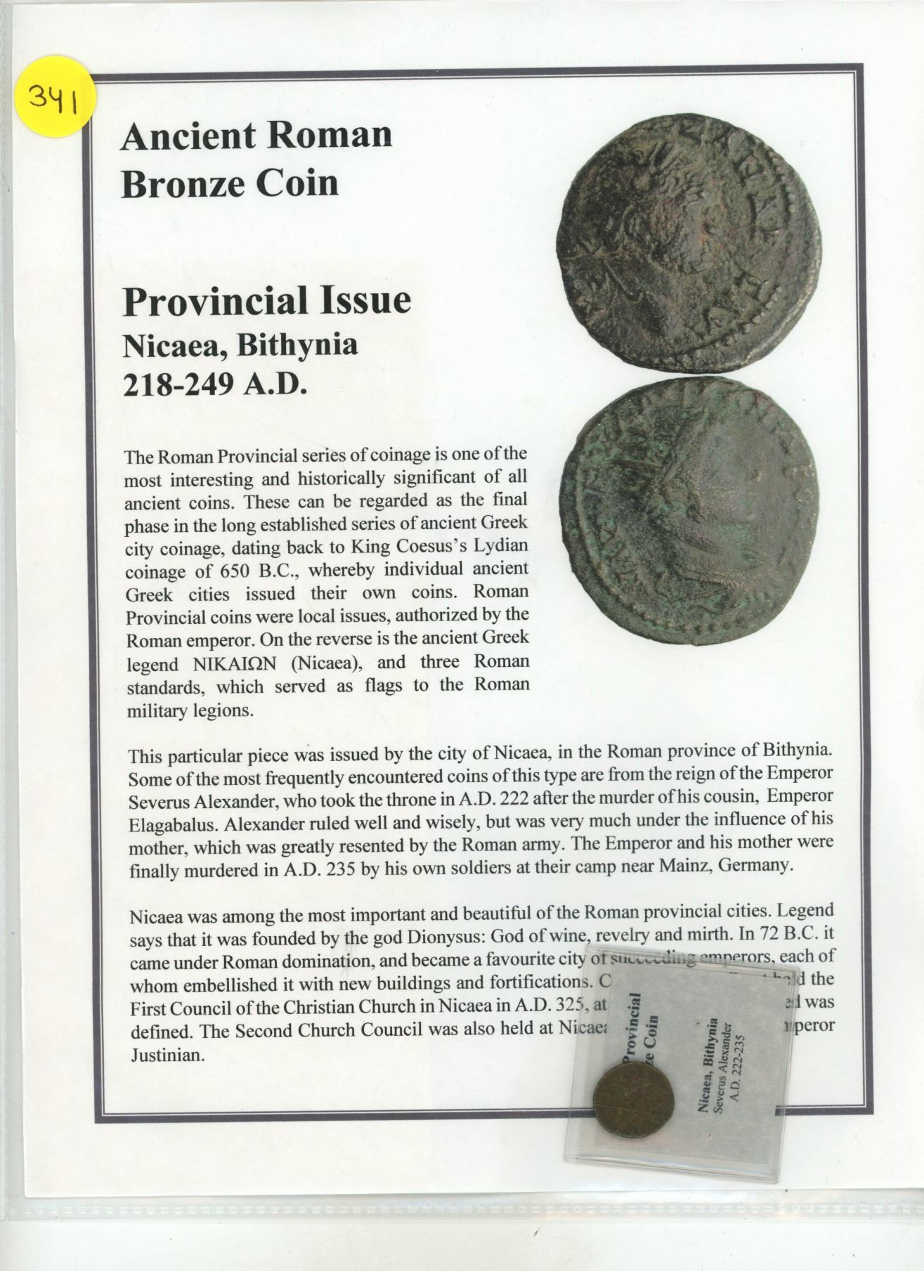 218-249 A.D. Roman Bronze Provincial Issue Coin: Nicaea, Bithynia, COA