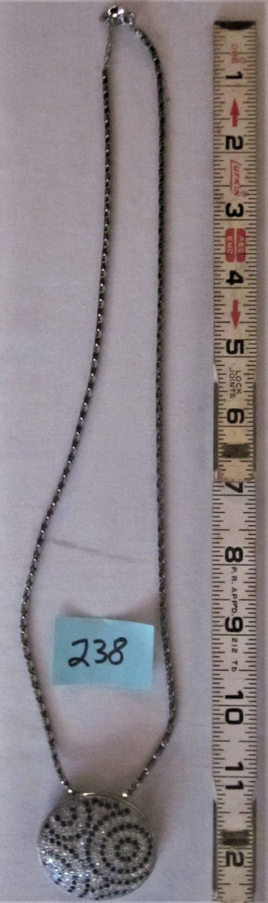 22" BLACK, WHITE, SILVER BUTTLER NECK CHAIN / CIRCULAR PENDANT BROACH
