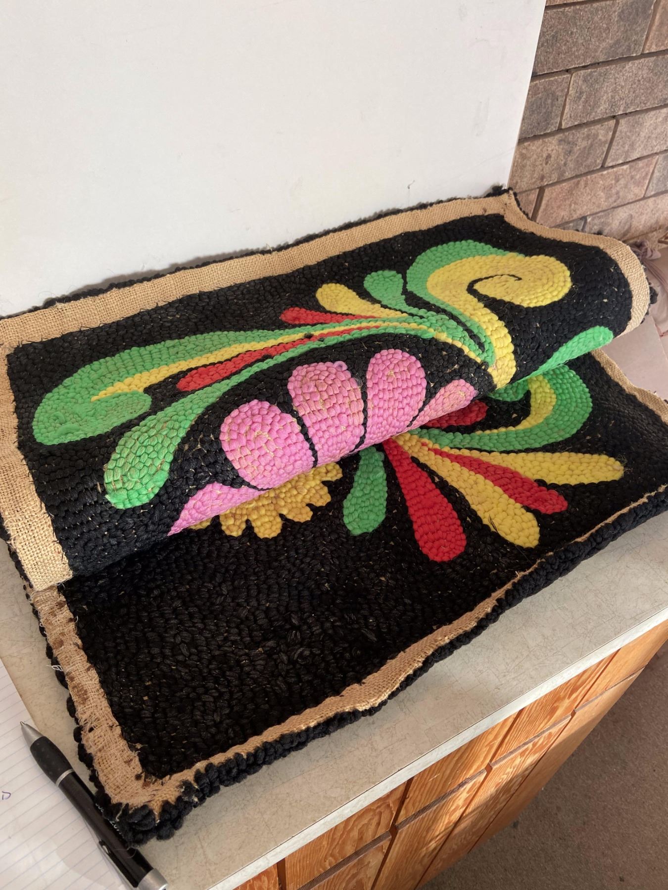 22" X 34" 1940's vintage hooked rug