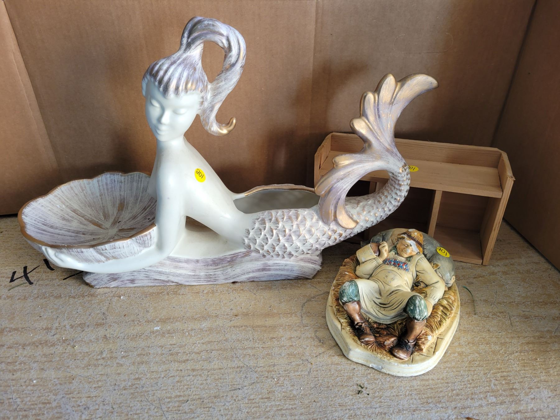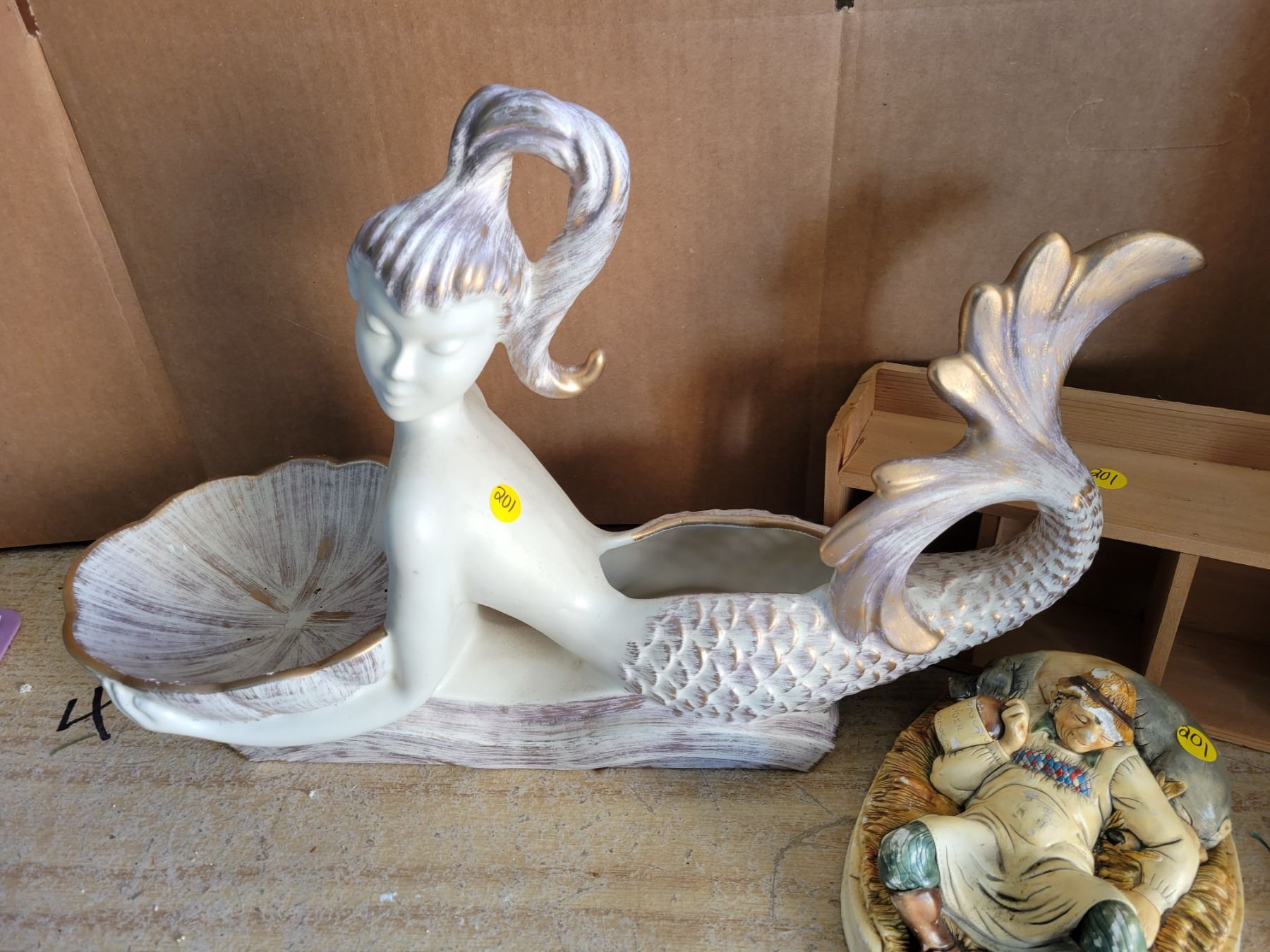 22 inch ceramic mermaid centerpiece/planter & misc décor