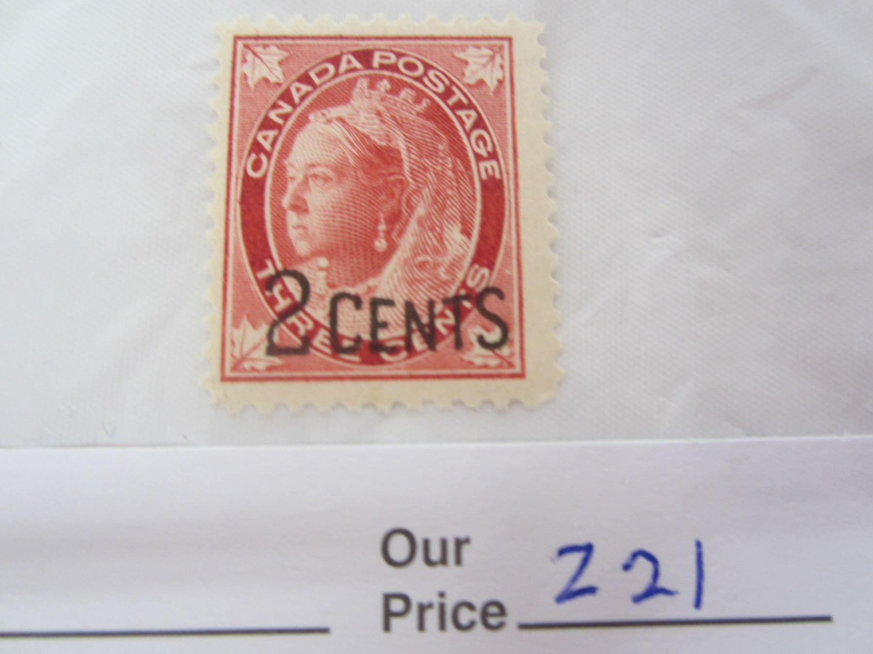 221. Victoria Surcharge 2 over 3 O/G N/H never used