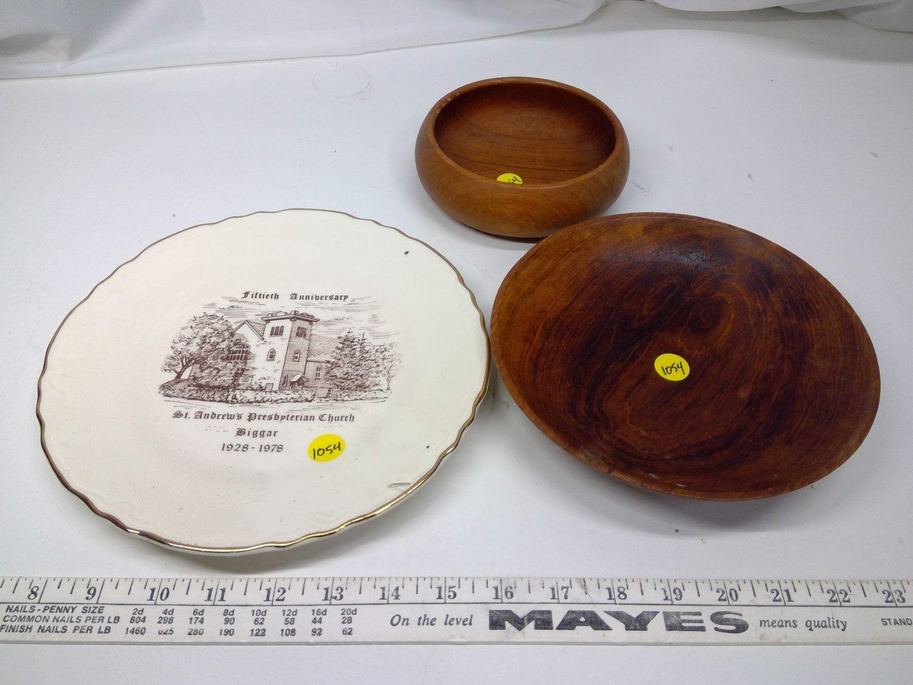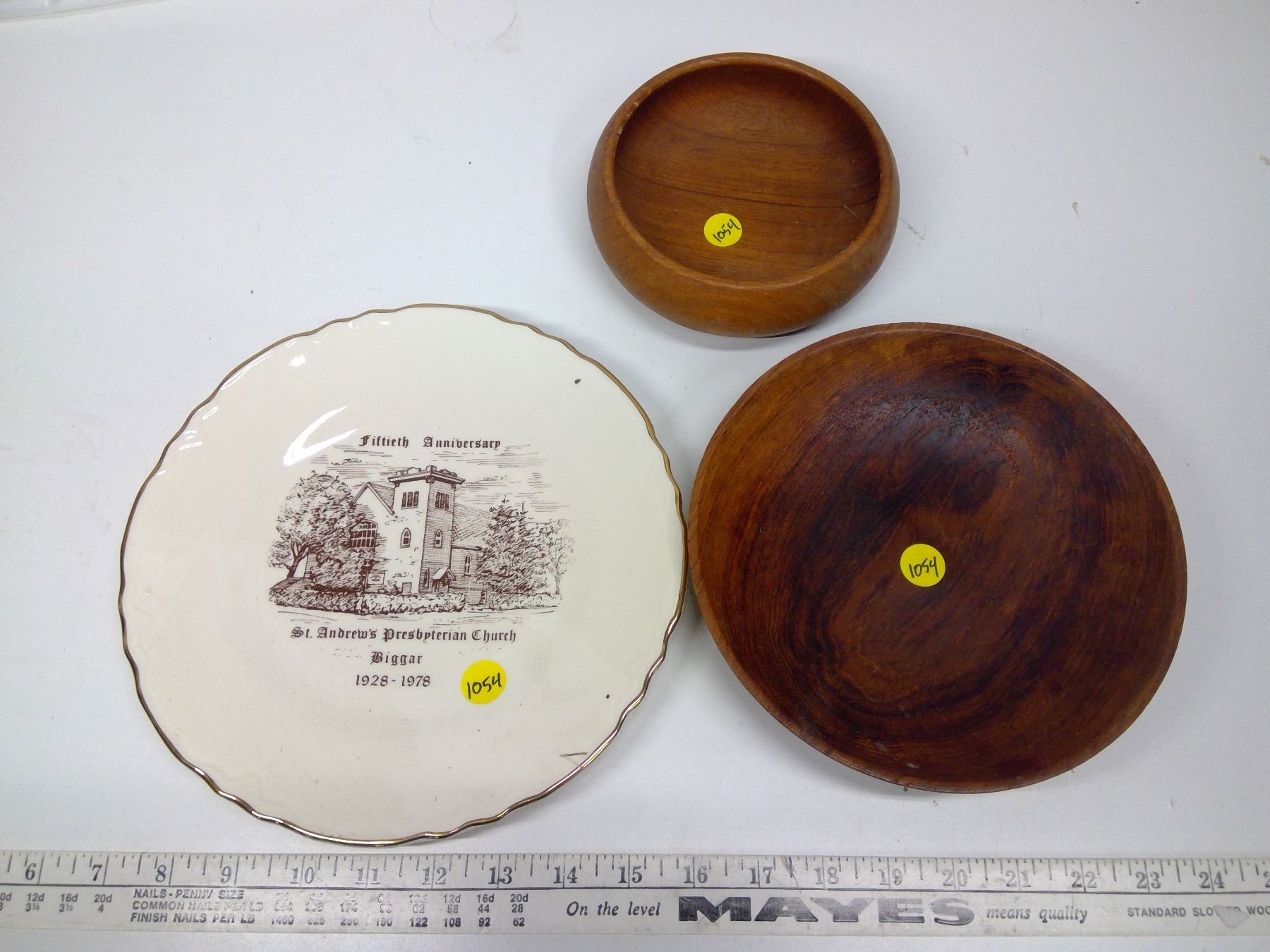 22k Gold St. Andrews Church Plate and 2 Wooden Dishes