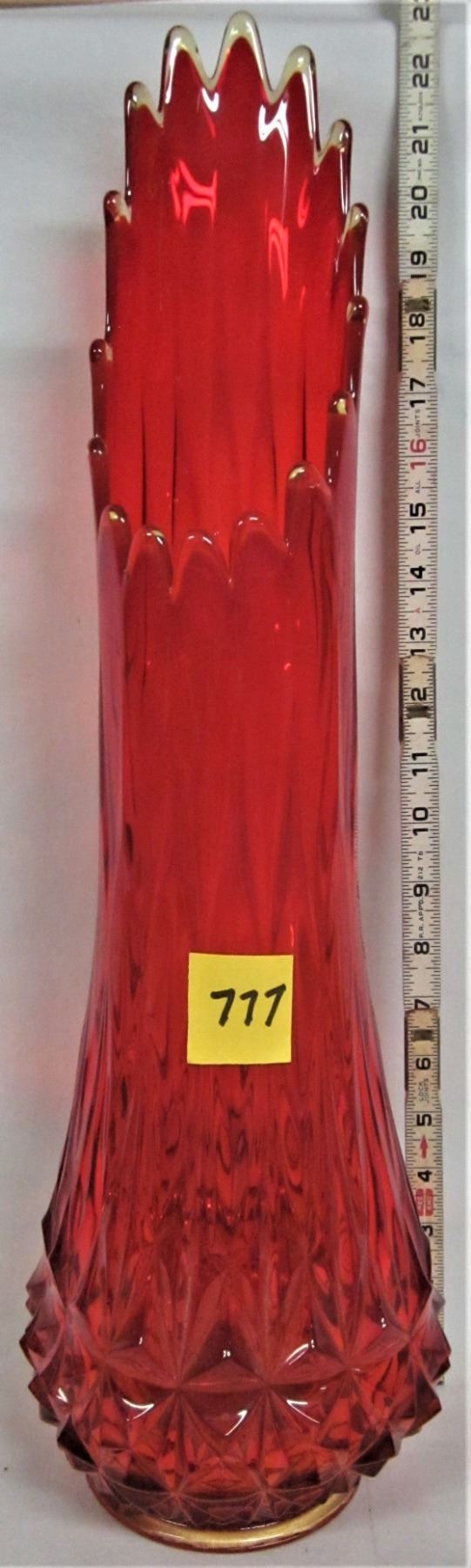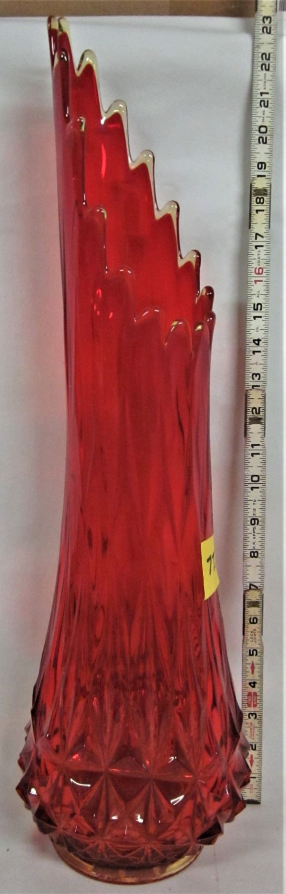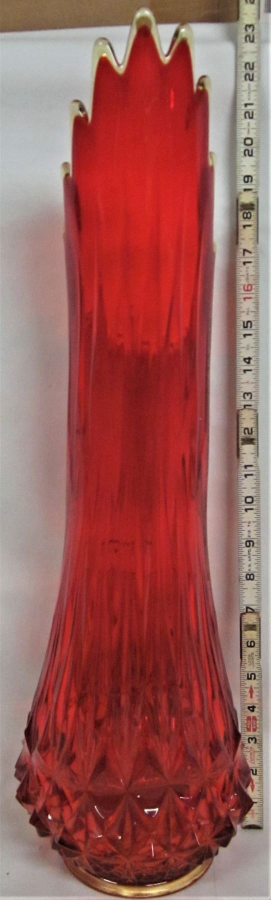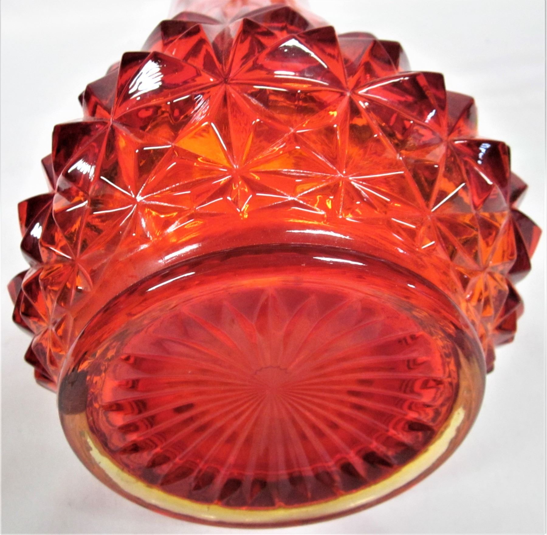 23" tall orange/red diamond design bittersweet slung glass vase - rare, vintage