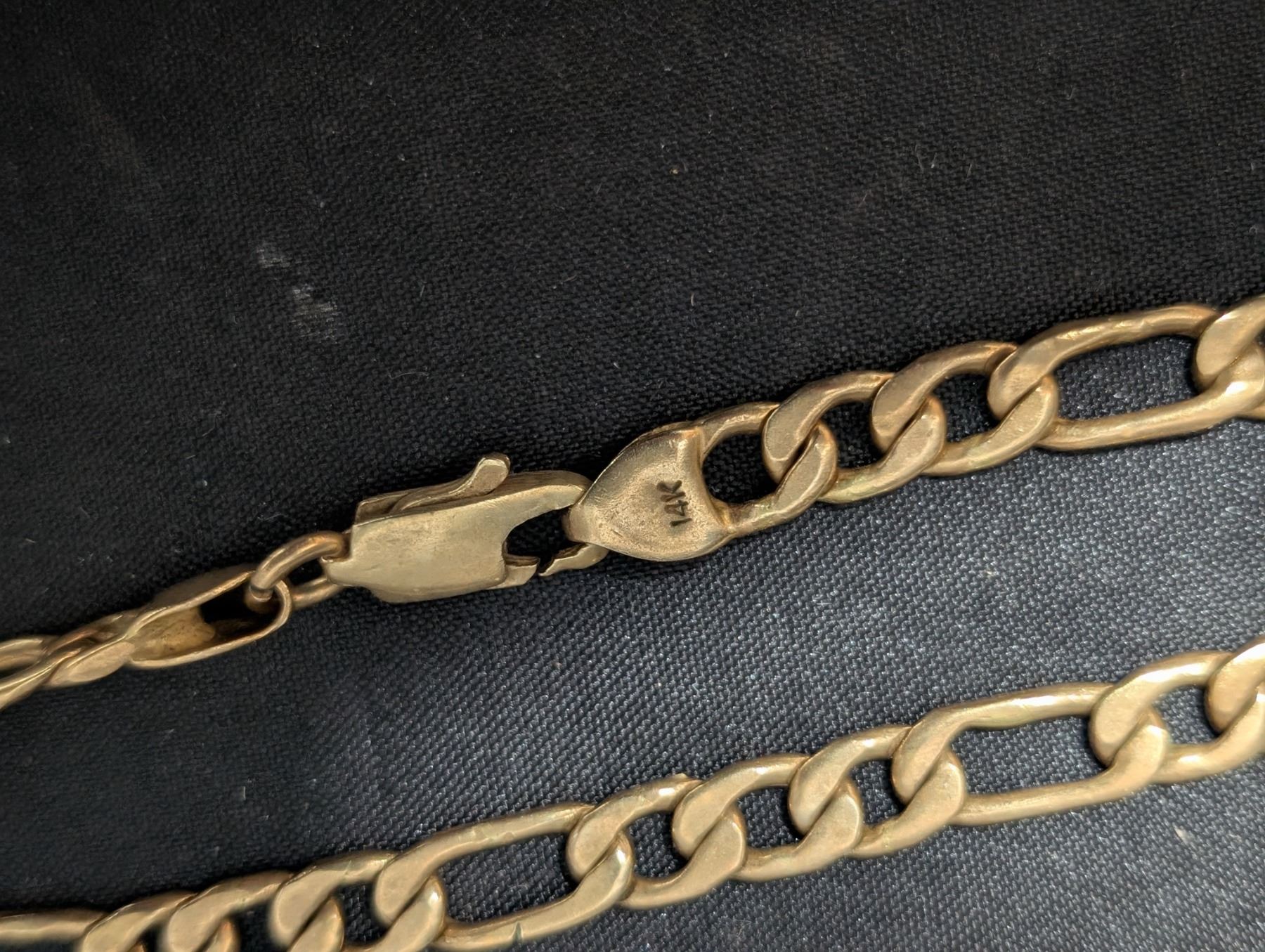 24"-Figaro Chain Stamped 14K Estate Piece- 35grams