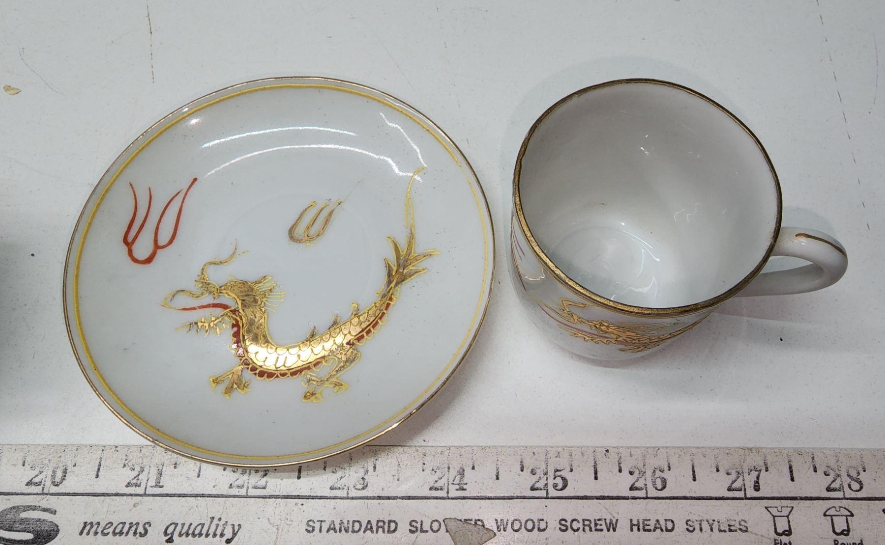 24K Gold Dragon Wear Geisha Lithophane Teacup – Japan + 2 Dragons