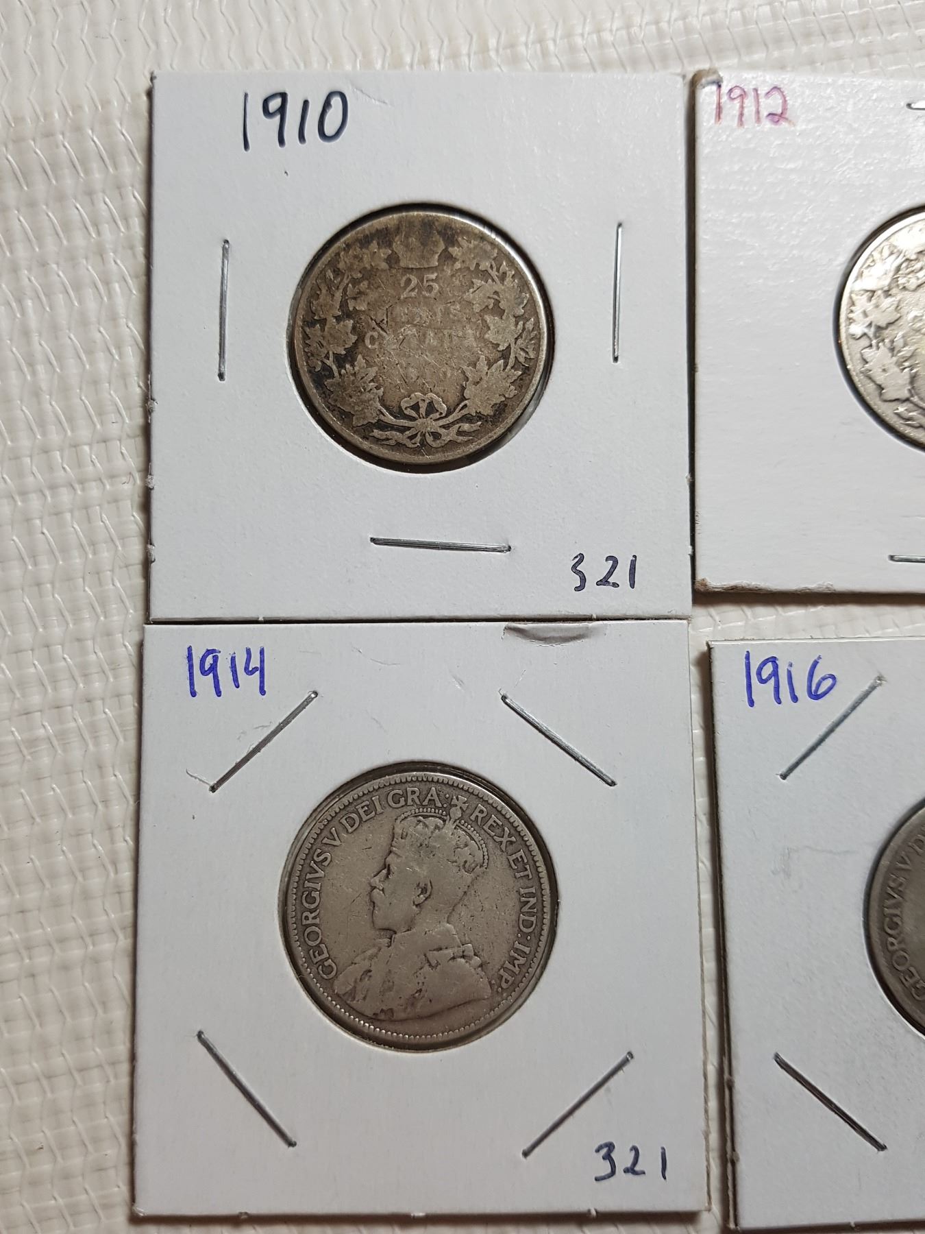 25 CENT CANADA COINS (1910, 1912, 1914, 1916)