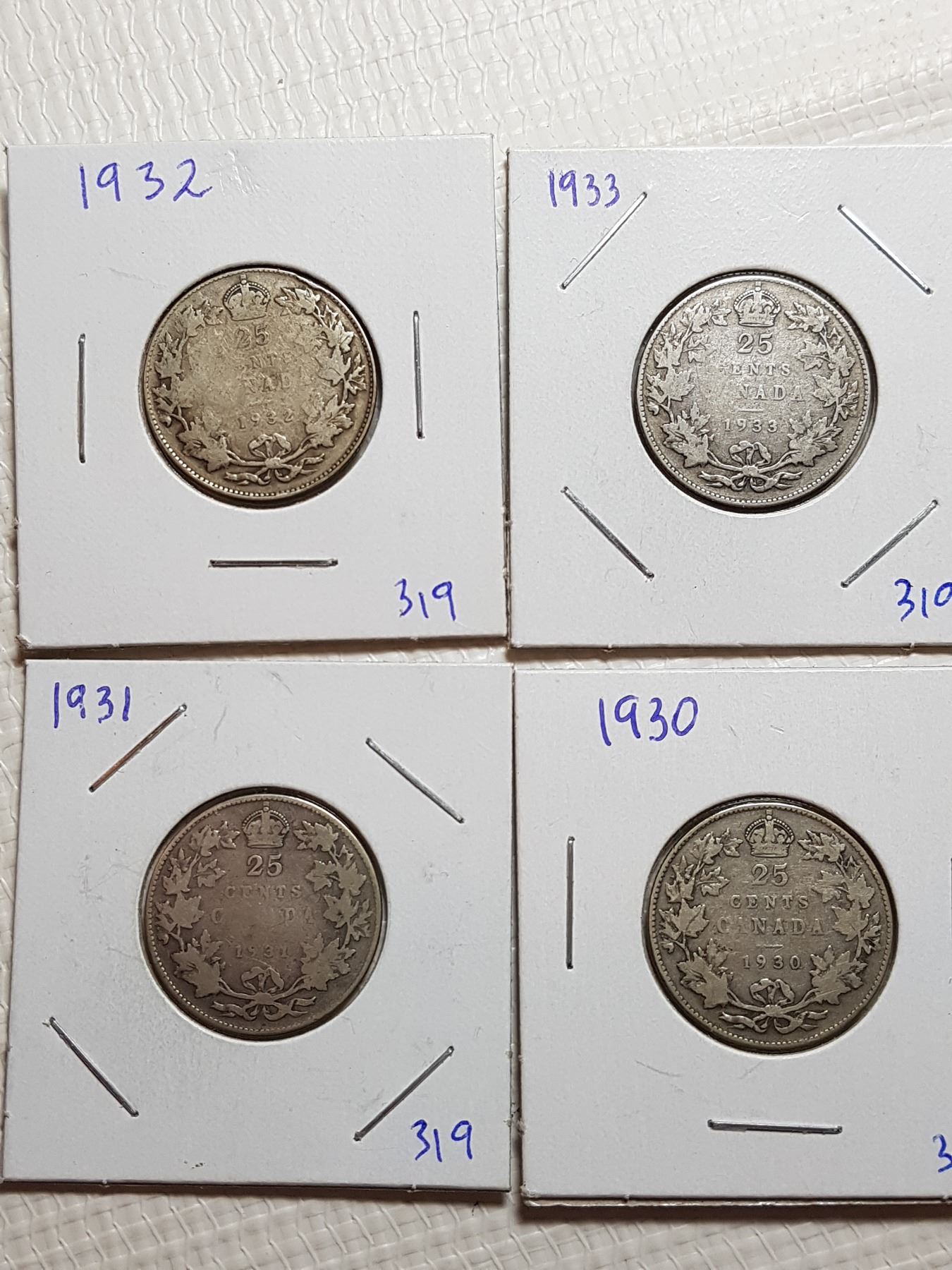 25 CENT CANADA COINS (1930, 1931, 1932, 1933)