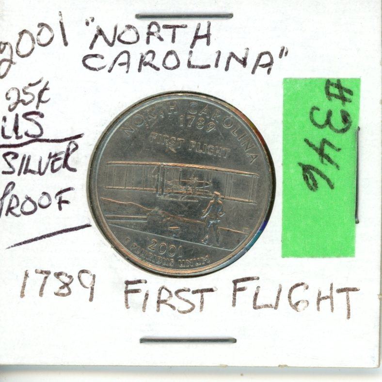 25¢ U.S. Silver Proof "1789 First Flight" North Carolina