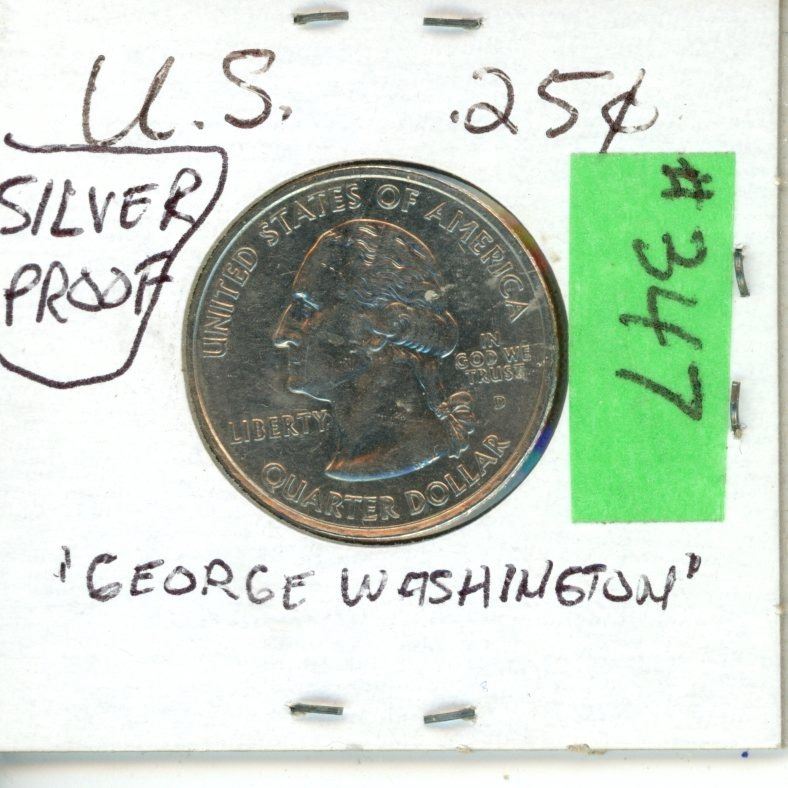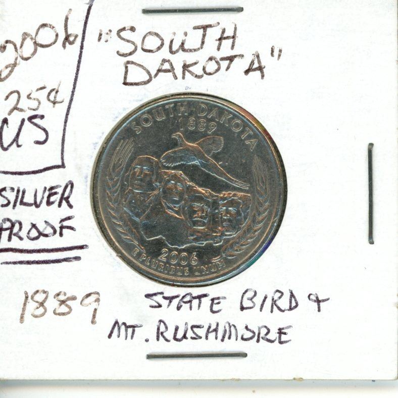 25¢ U.S. Silver Proof "1889 South Dakota State Bird and Mount Rushmore"