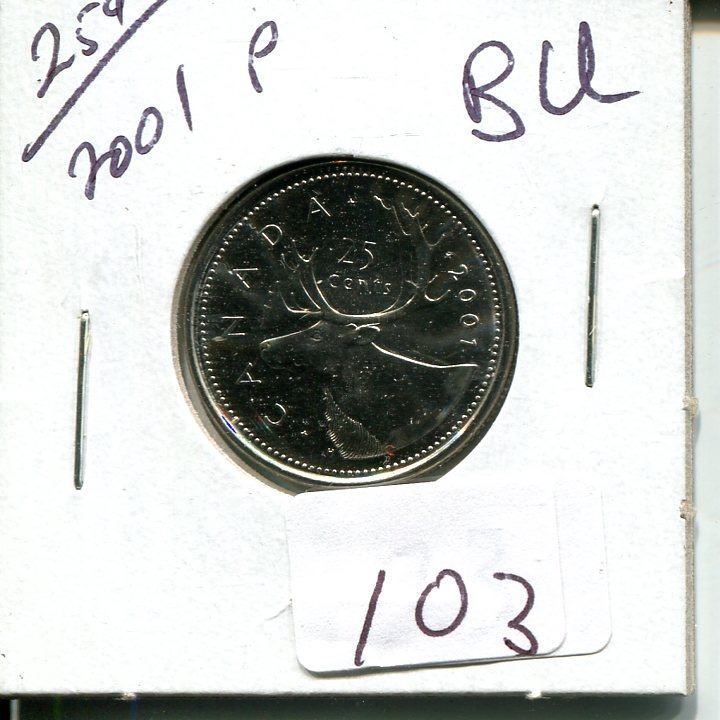 25 cents Canadian 2001 "P" BU quarter coin