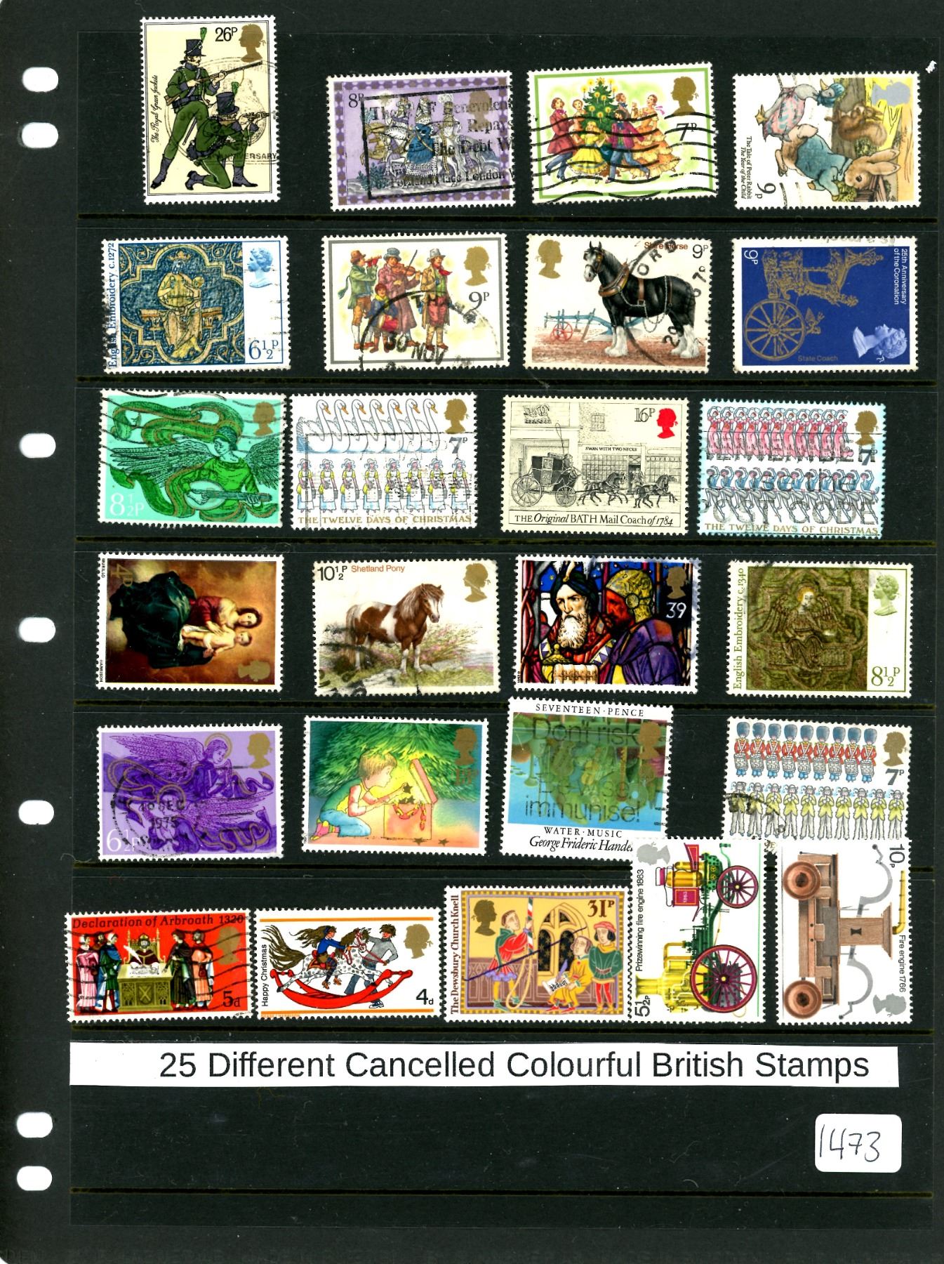25 different cancelled colorful British stamps