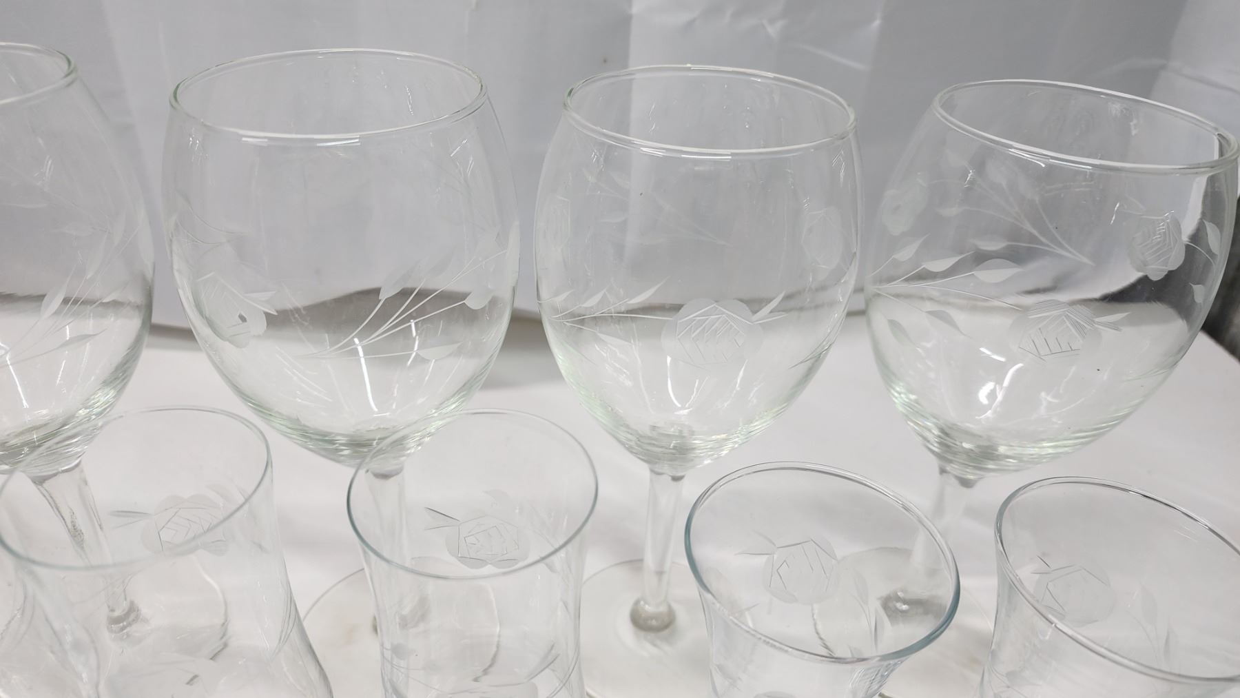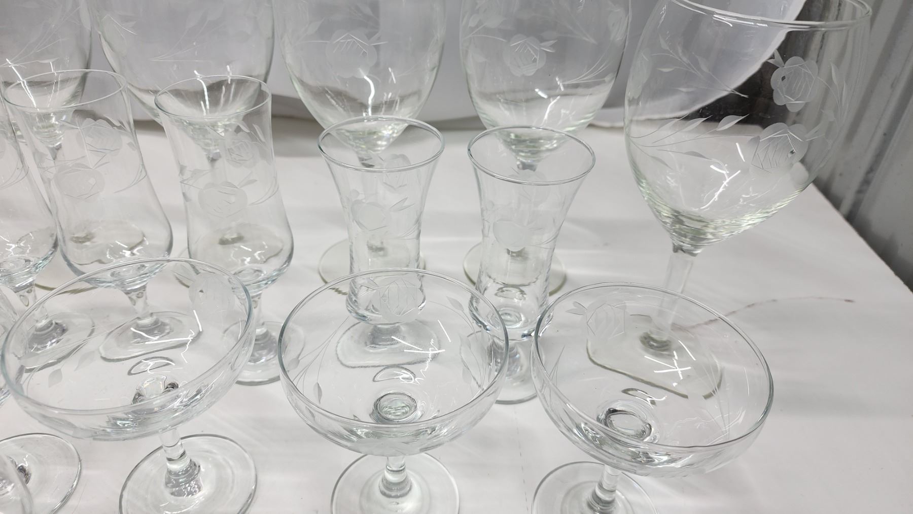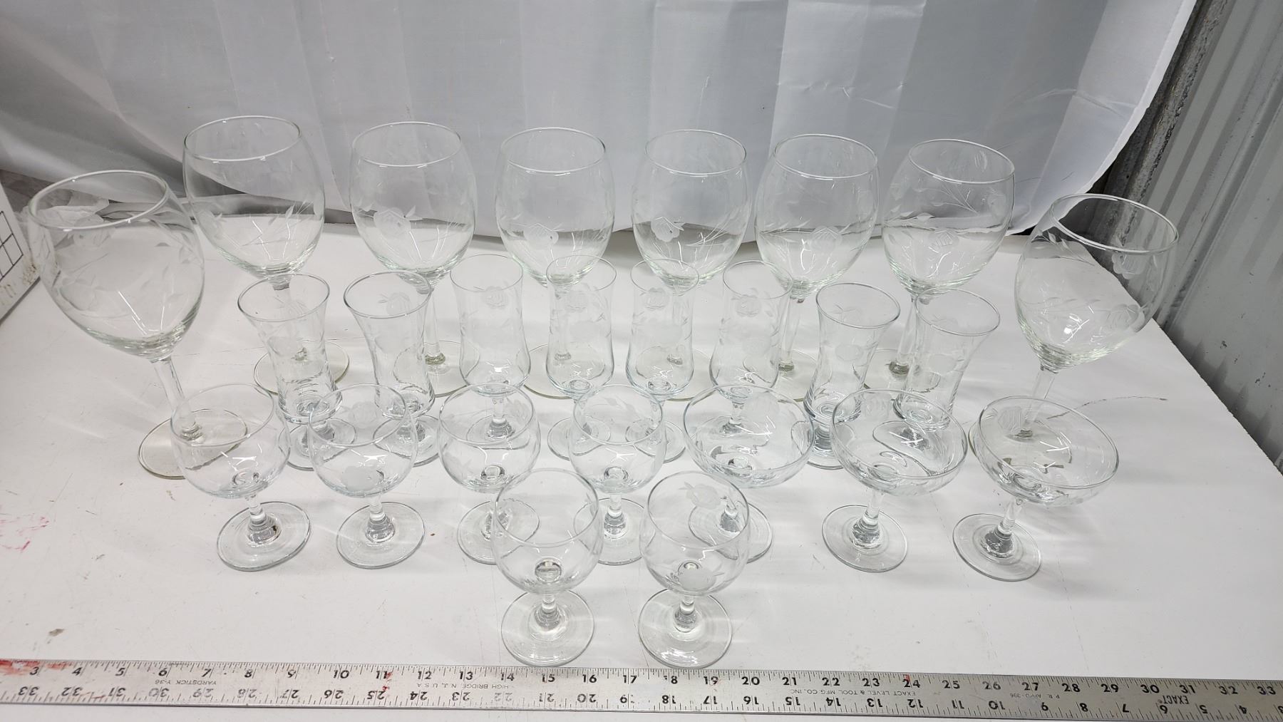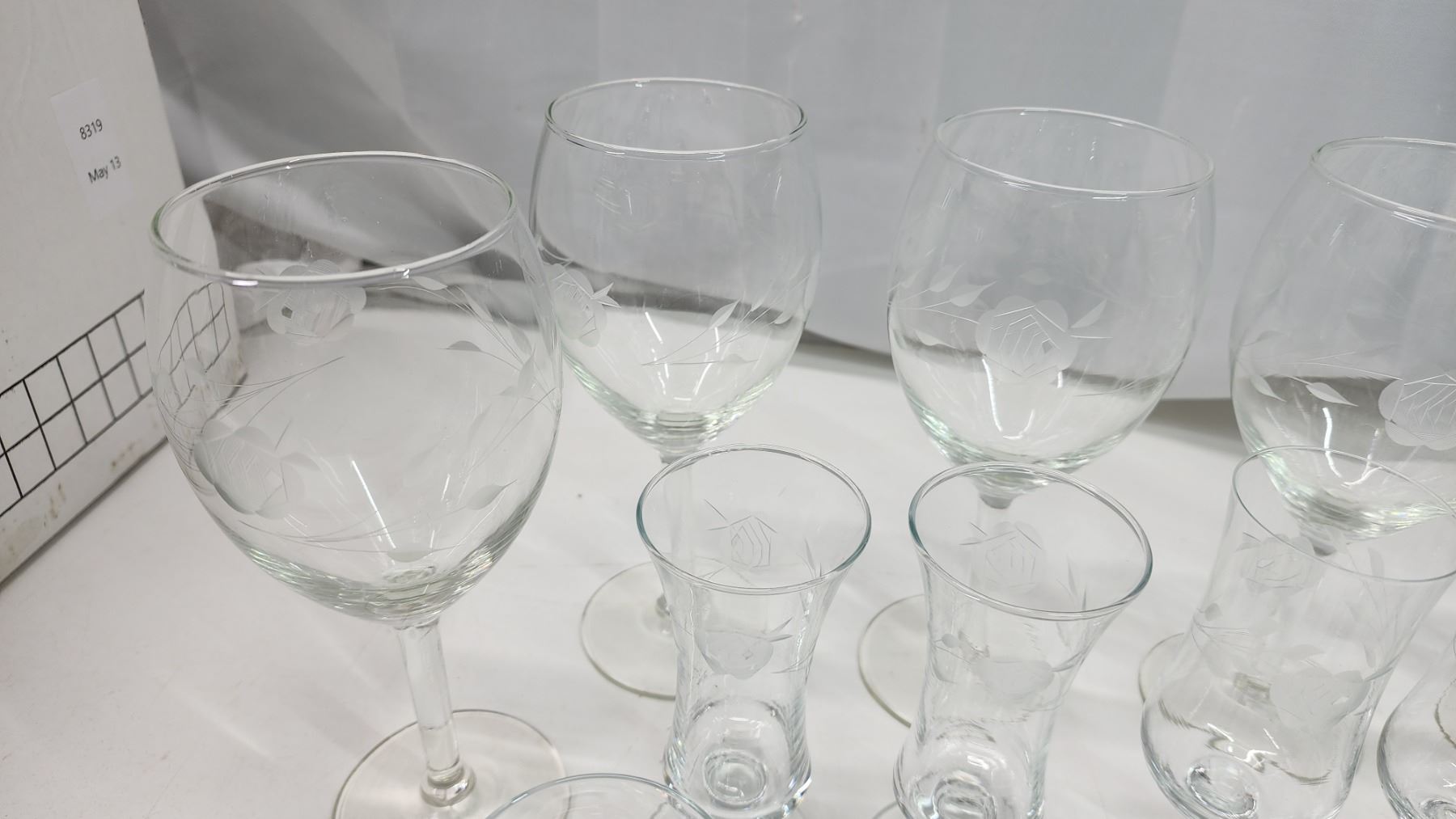 25 piece Avon Rose hand etched glassware - won by Avon Rep 1978 - like new collectible