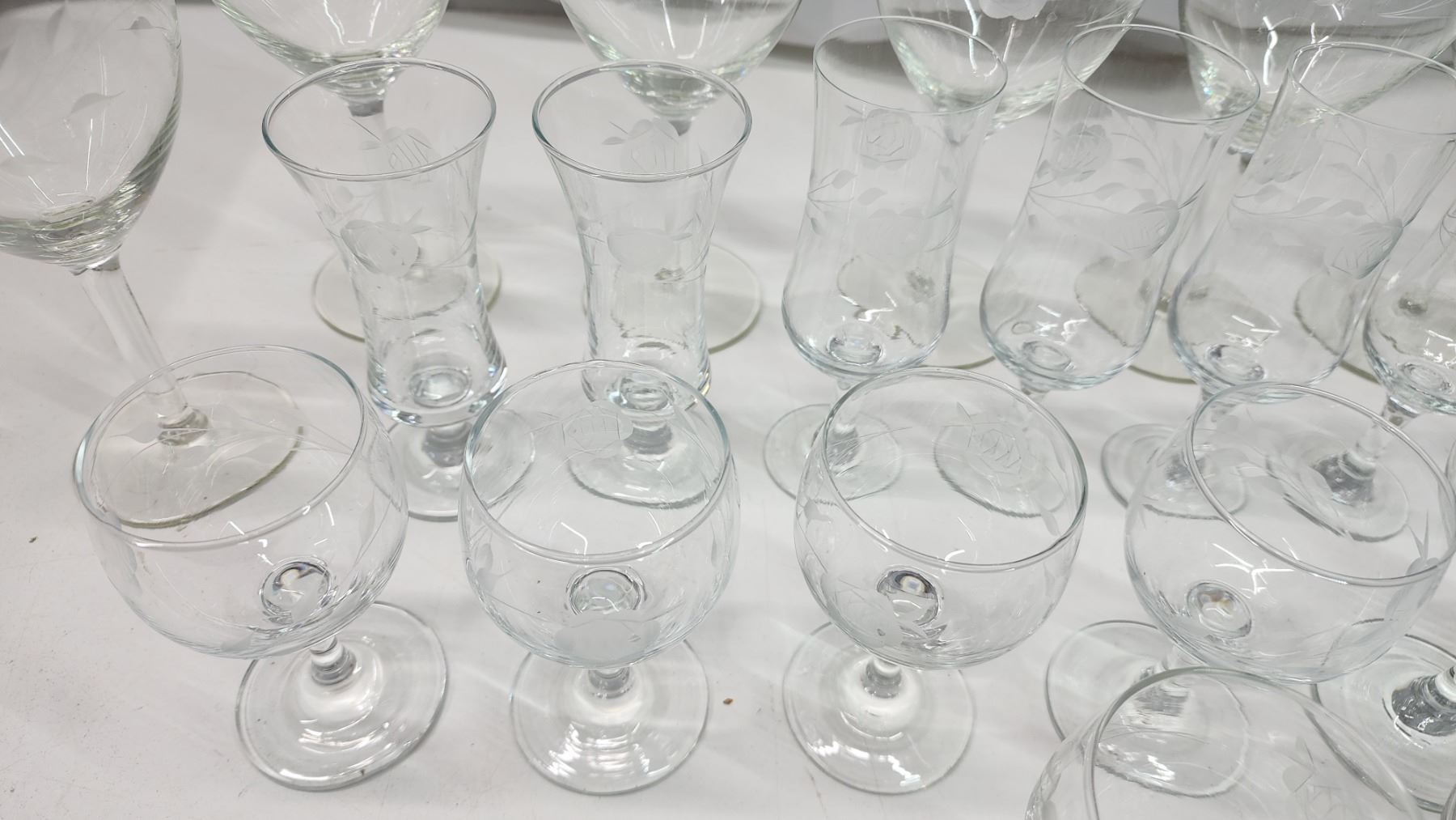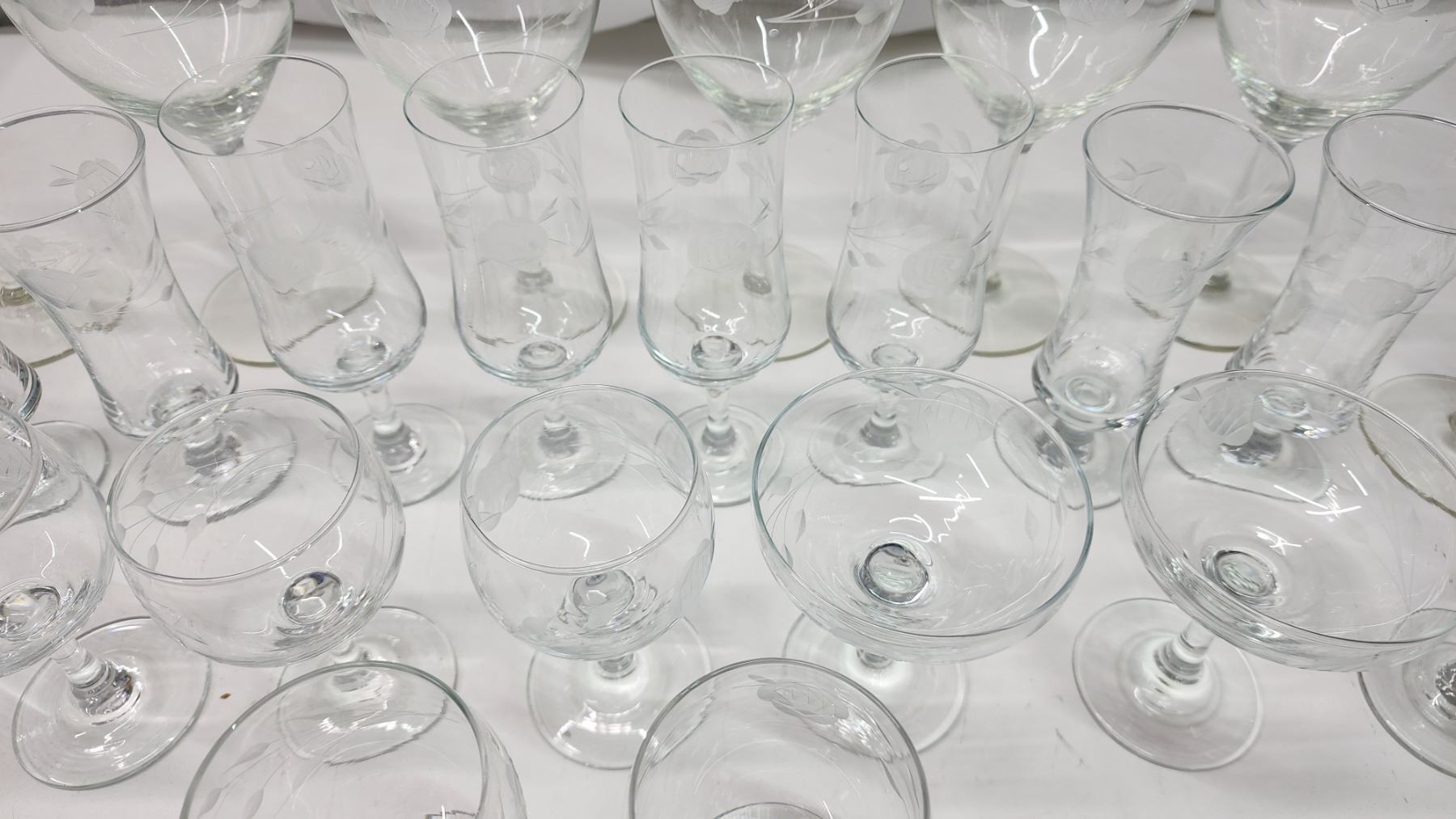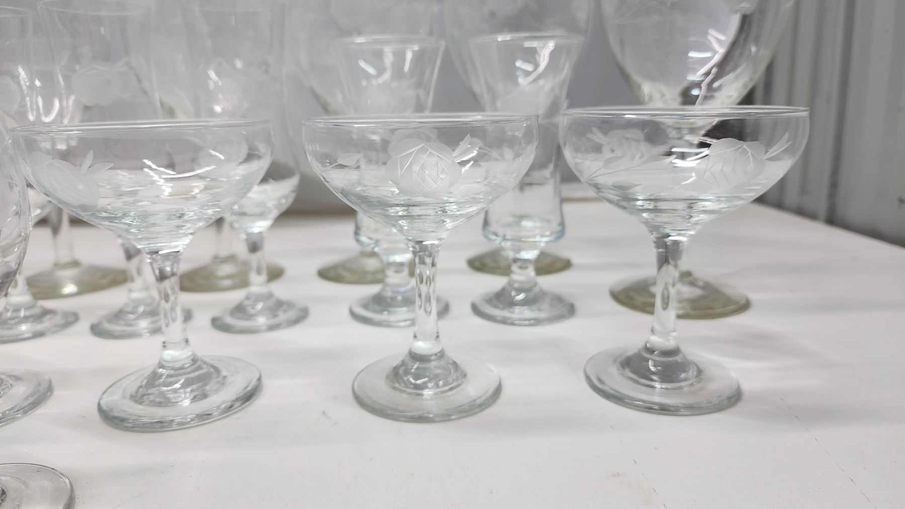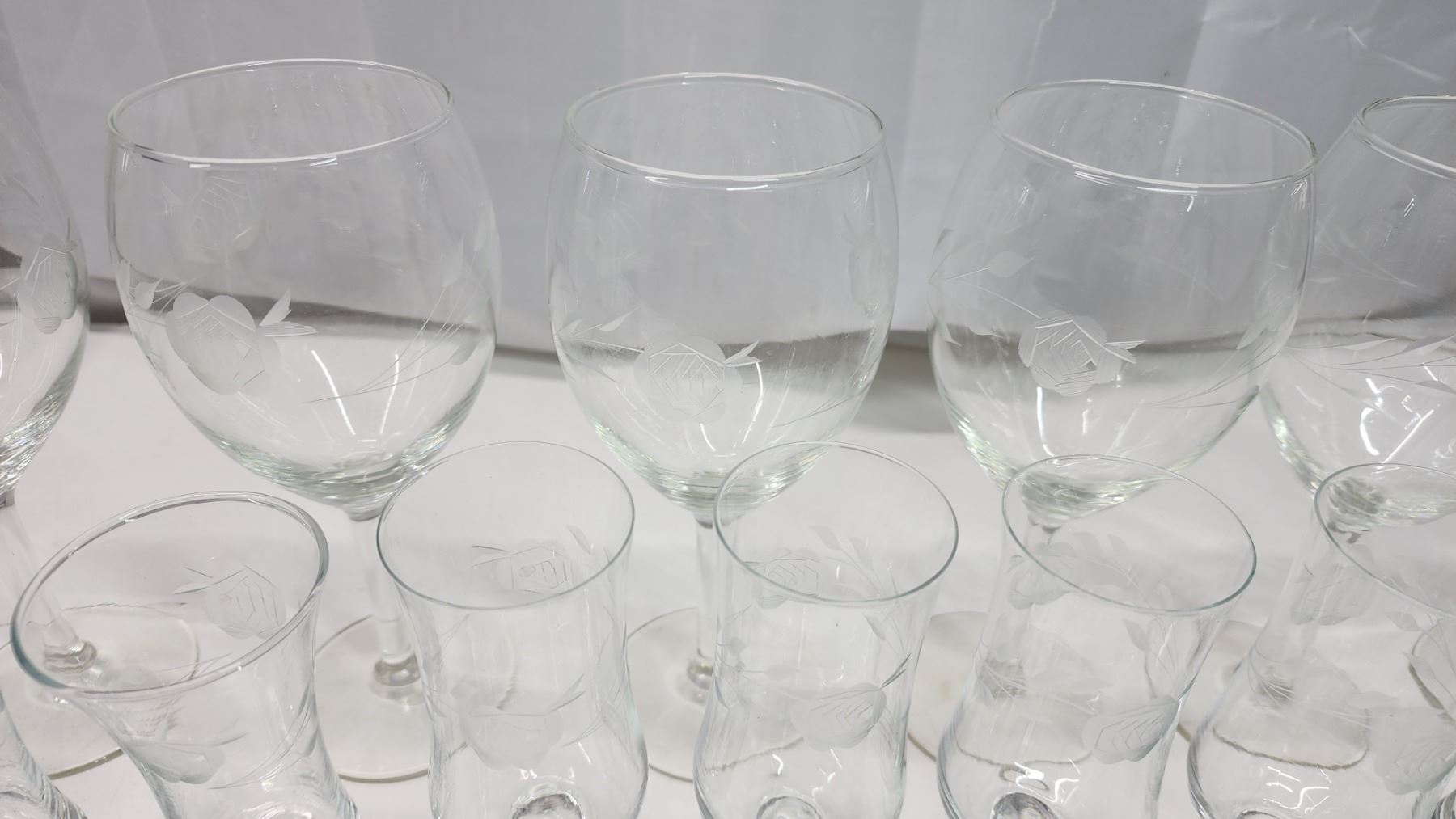 25 piece Avon Rose hand etched glassware - won by Avon Rep 1978 - like new collectible