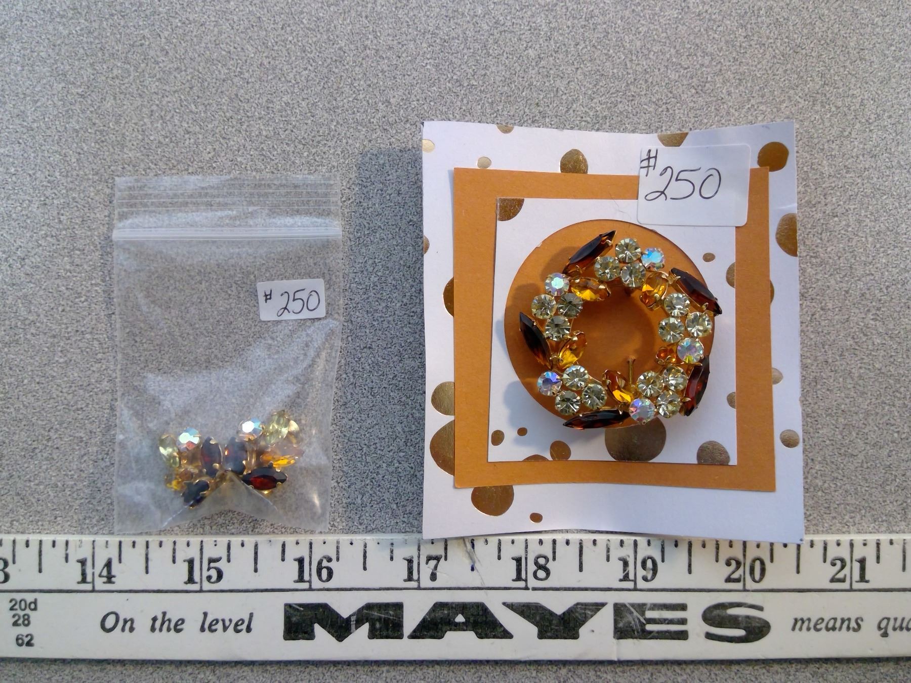 250. Rhinestone circle broach with clip earrings