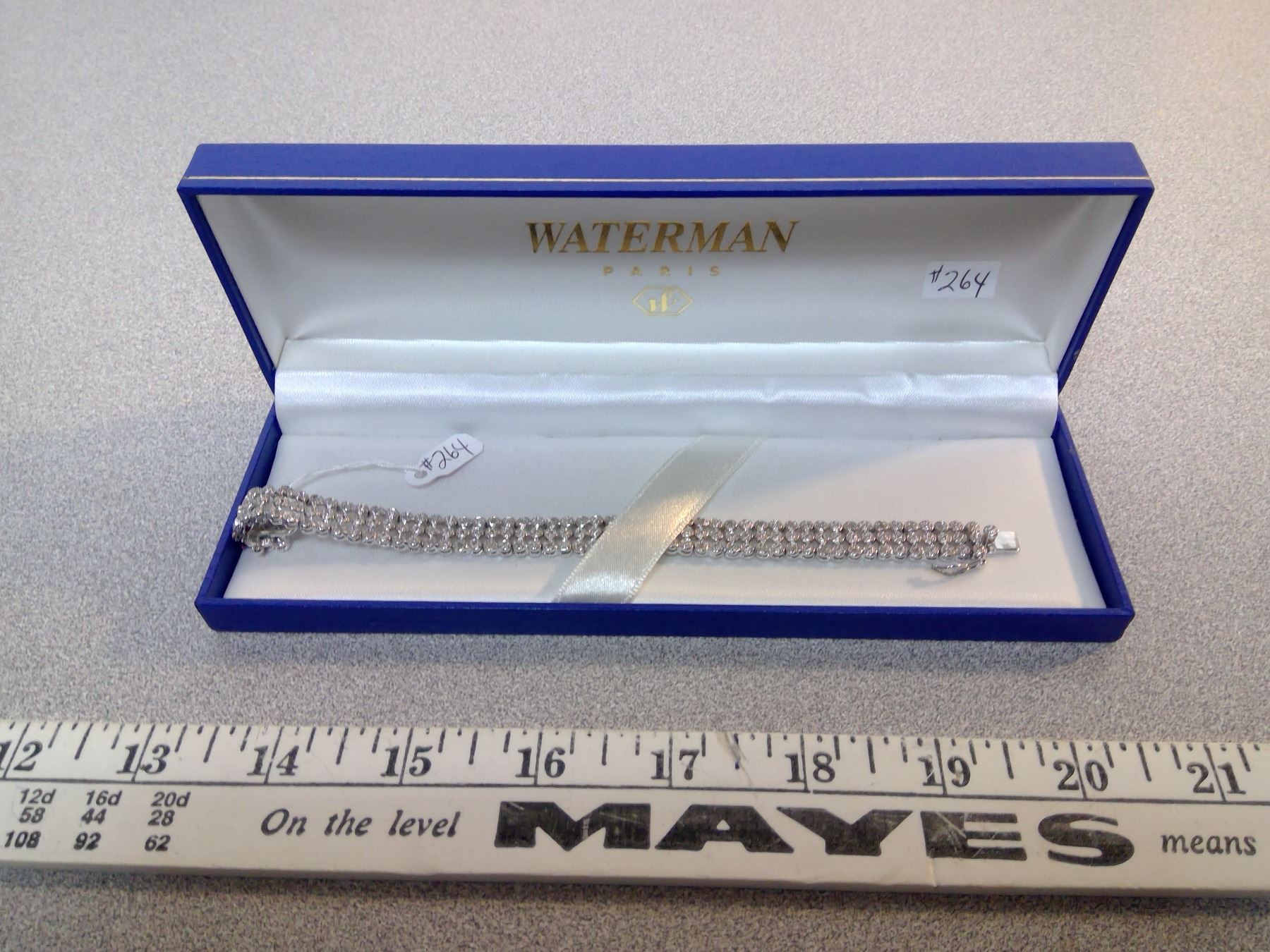 264. Sterling tennis bracelet, diamond effect, box clasp with safety 7 ¼”