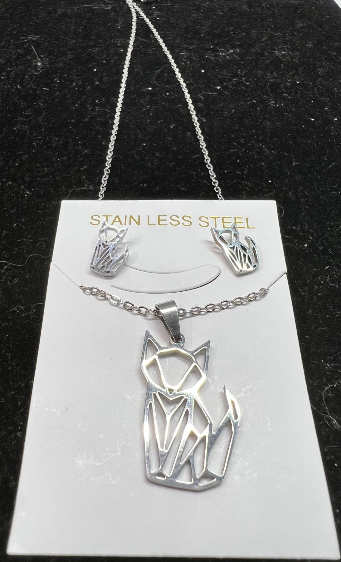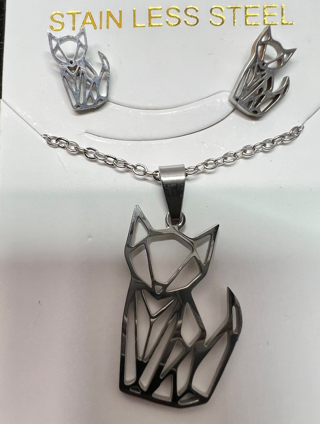 28. Stainless Steel Cat Earrings + Necklace Set