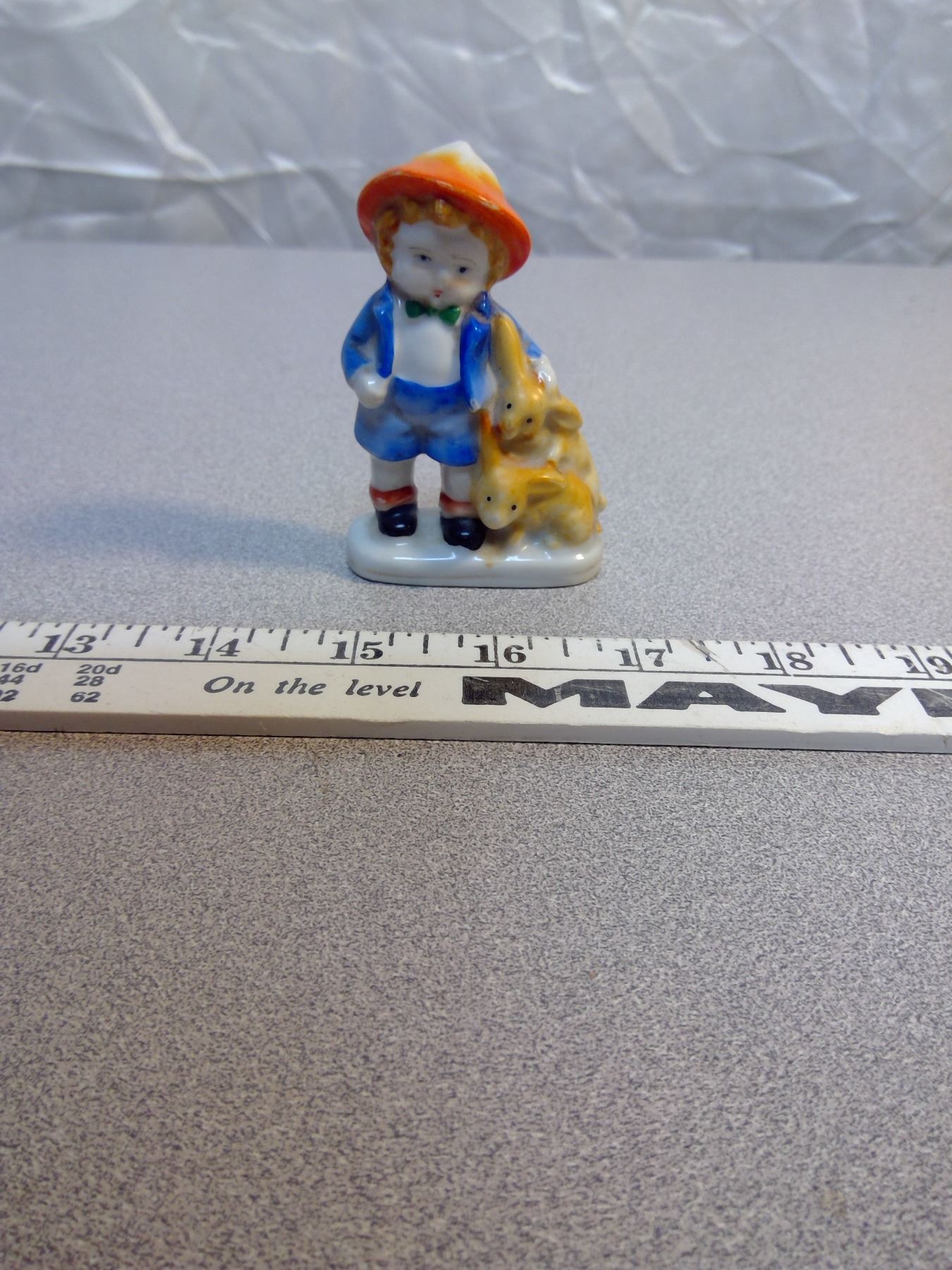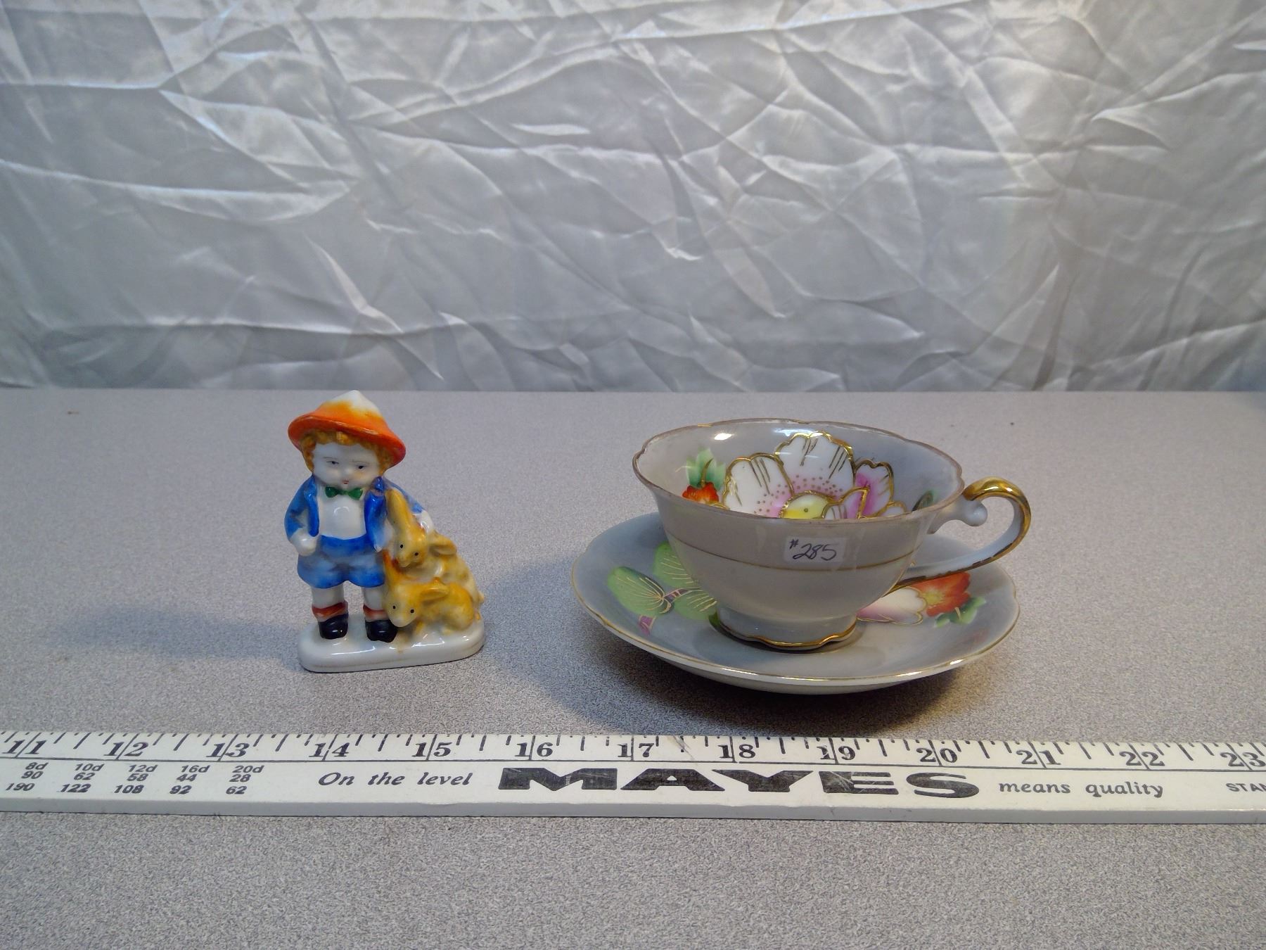 285. Occupied Japan cup and saucer & small figurine of boy with bunnies, 1945-56