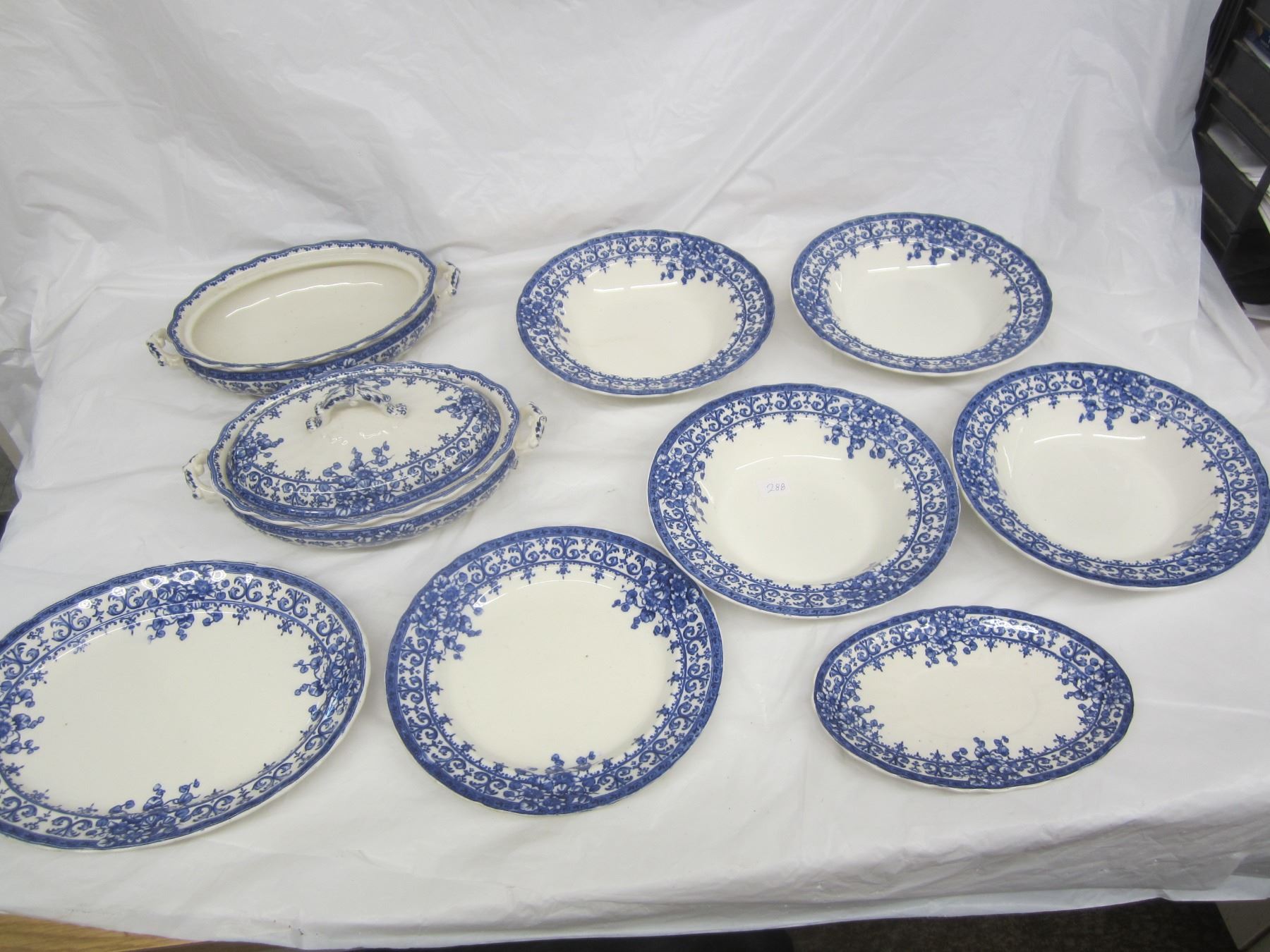 288. Lot of 9 Pieces of Blue and White Antique China