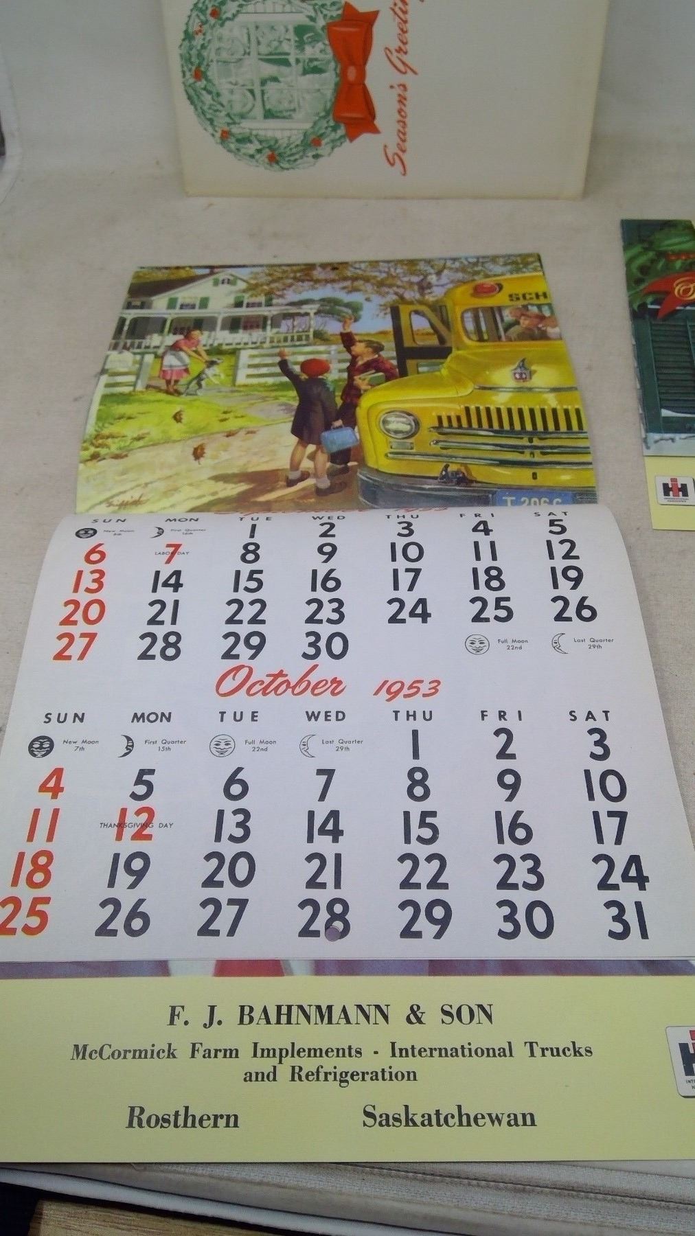 2X SEASONS GREETINGS 1953 CALENDARS