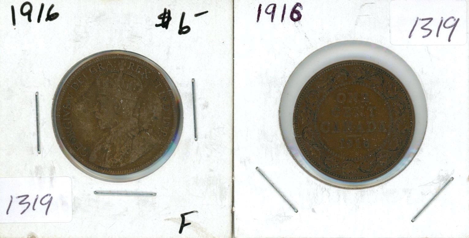 2x 1916 Canada One Cent