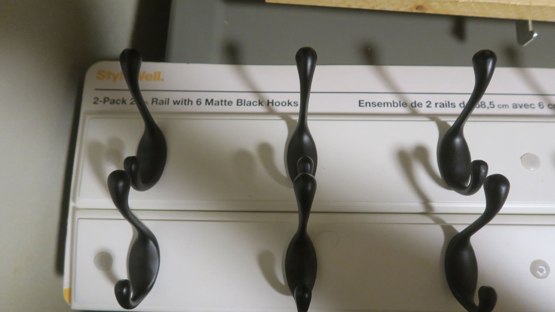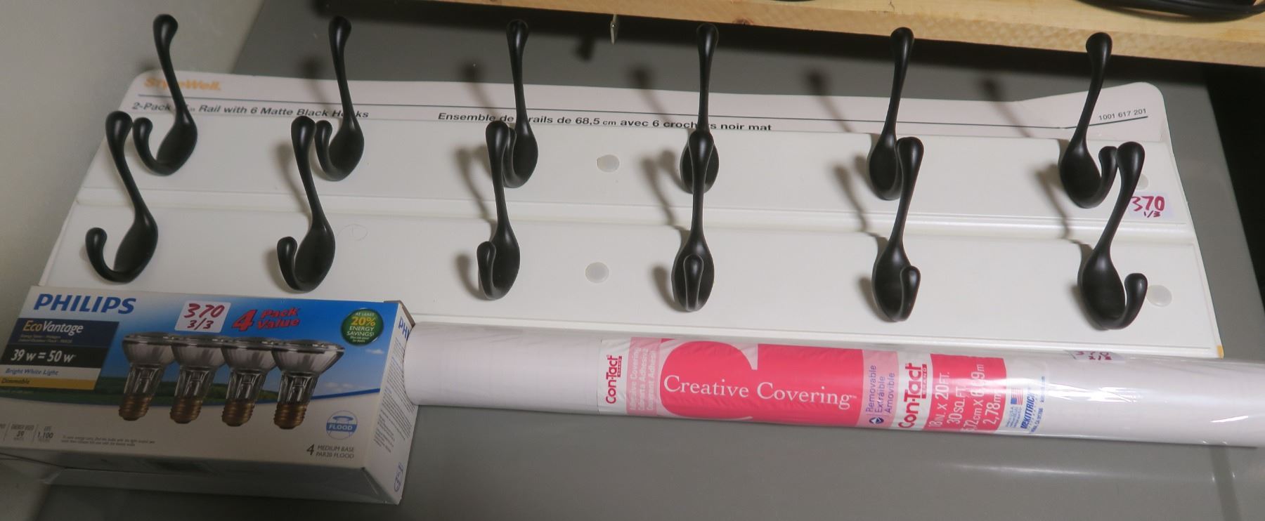 2x 27" wall coat hanger bars + 3 Philips 39w=50w bulbs + roll of Con-Tact adhesive covering